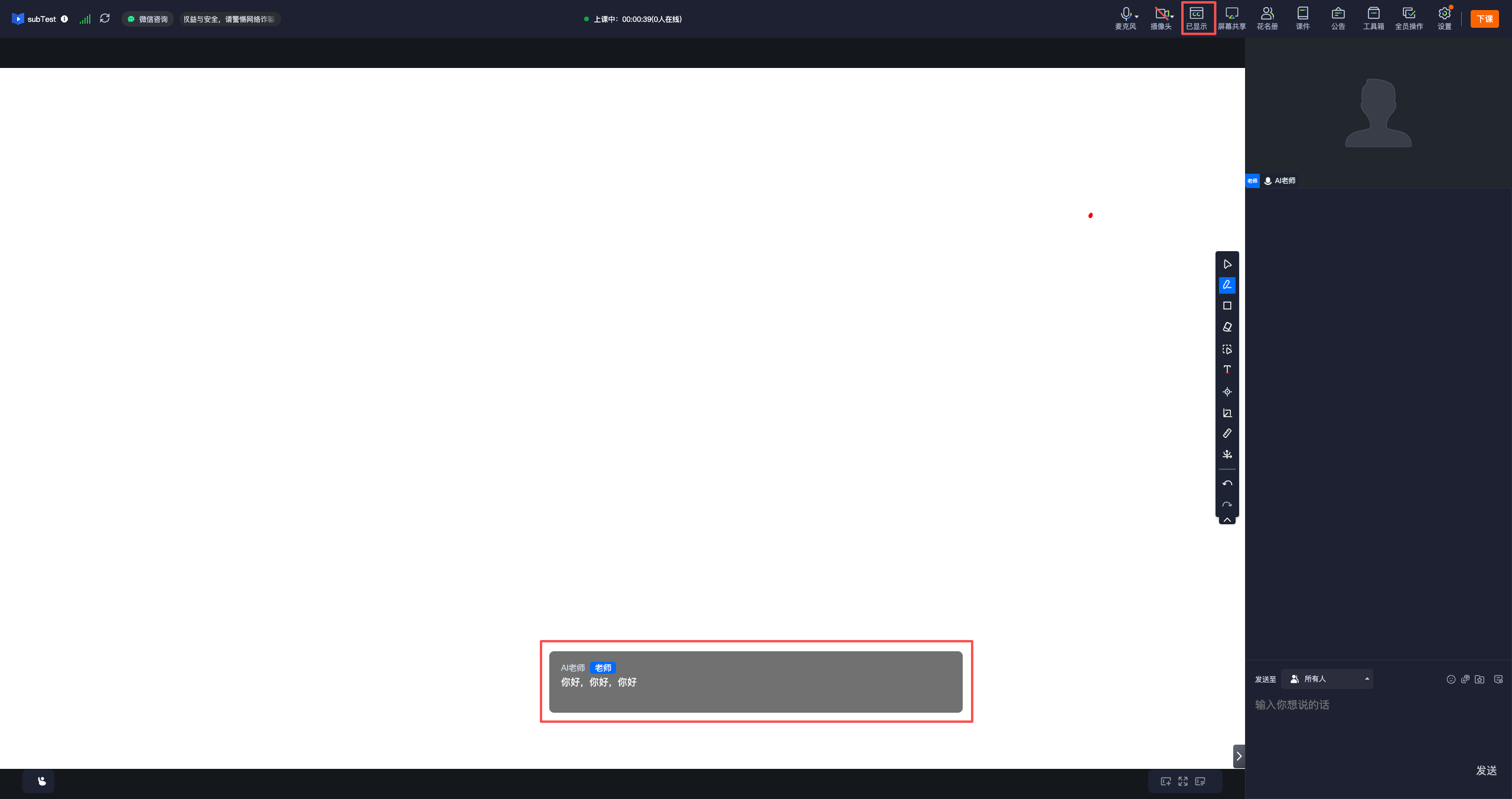 在上课过程中,用户可以通过开启字幕转写,将实时语音转写成字幕内容并展示在课堂界面中,且支持灵活拖动。