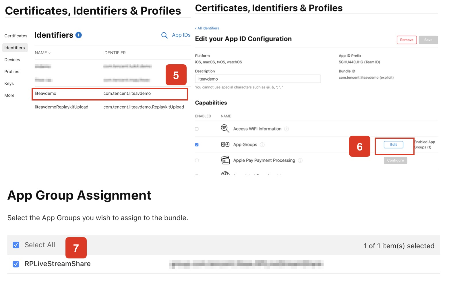 5. 回到 Identifier 页面,选择 App IDs,单击您的 App ID(主 App 与 Extension 需进行相同配置)。