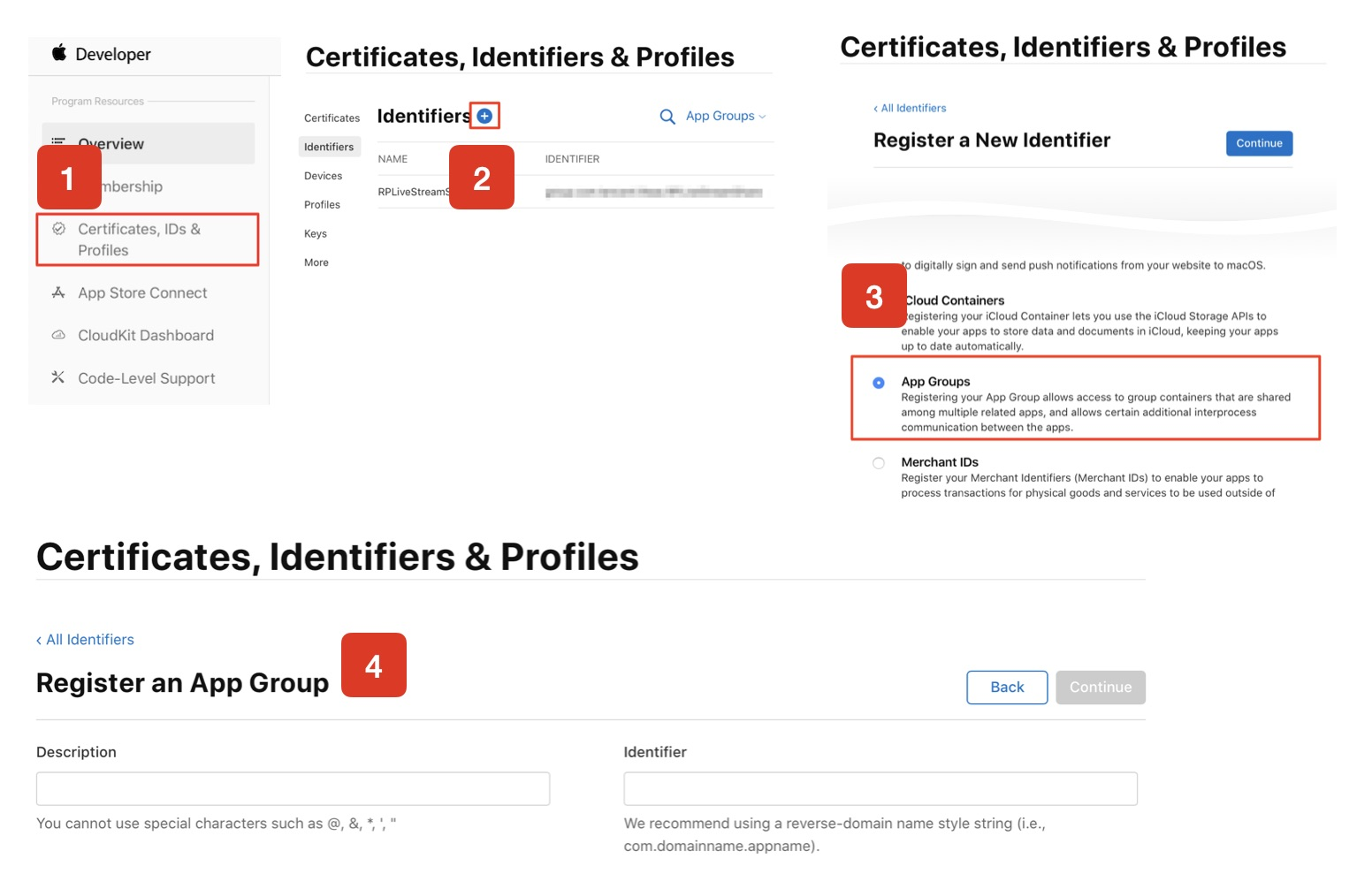 4. 填写 Description 和 Identifier(Identifier 需传入接口中的 AppGroup 参数),单击 Continue。