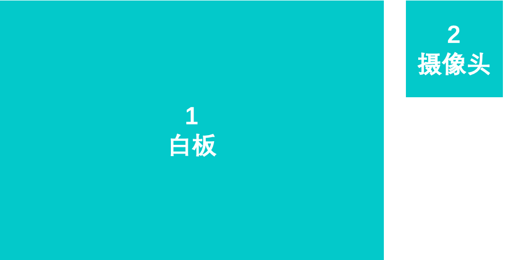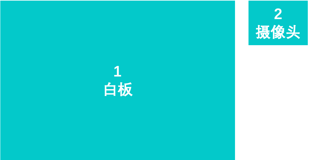 replay_layout = 5 | 教师显示区域(2所在区域)宽高比为1:1。 当源视频流比例不为1:1时则会裁剪显示。 | ![]() | 如图所示,此类模板分为2个区域: 白板/屏幕共享区域(1所在区域) 教师显示区域(2所在区域)。 白板/屏幕共享区域:当有屏幕分享时,覆盖白板显示。 |