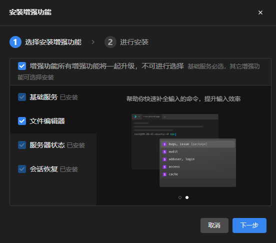 4. 单击增强功能-文件编辑器,进入安装。单击下一步,并确认安装。