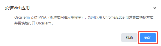 为了方便您在本地电脑中快速打开 OrcaTerm 登录您需要管理的服务器,我们提供 Progressive Web App(PWA),您可以根据需要将 OrcaTerm 创建桌面快捷方式,固定到任务栏等。