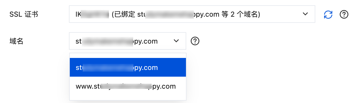 args:- name: app_certificationlabel: SSL 证书widget: certificate-selectoptional: true- name: app_domainlabel: 域名widget: domain-inputoptional: truecertId: ${app_certification.certId}