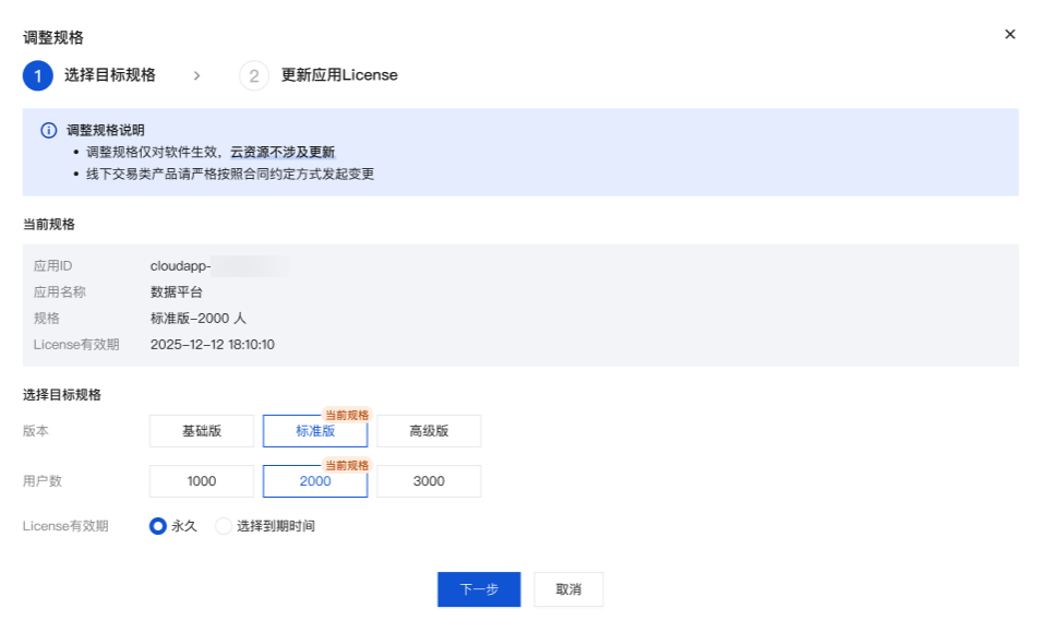 3. 支持调整商品规格和 License 的到期时间。