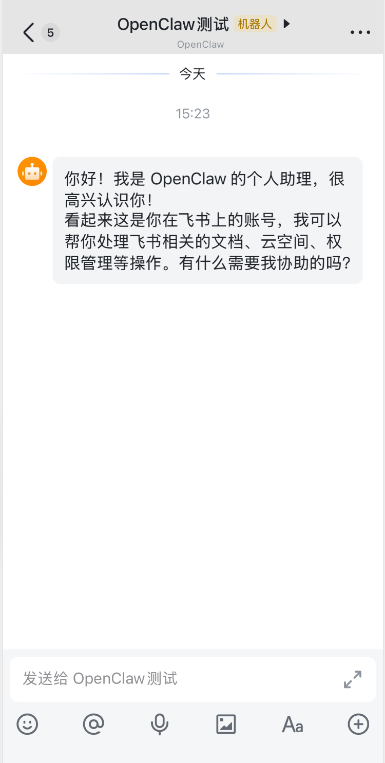 10. 打开飞书 APP,搜索机器人名称,即可与机器人开始对话。