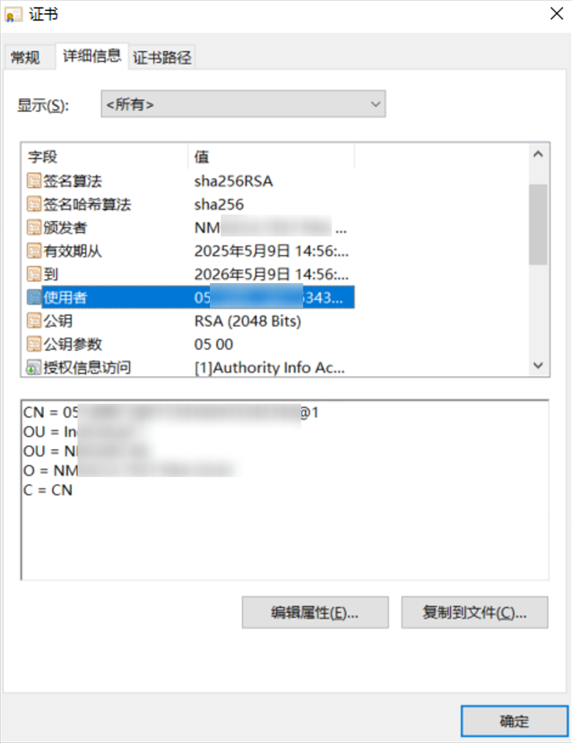 如何查看证书的用户名(CN)和 RA 机构(OU)?