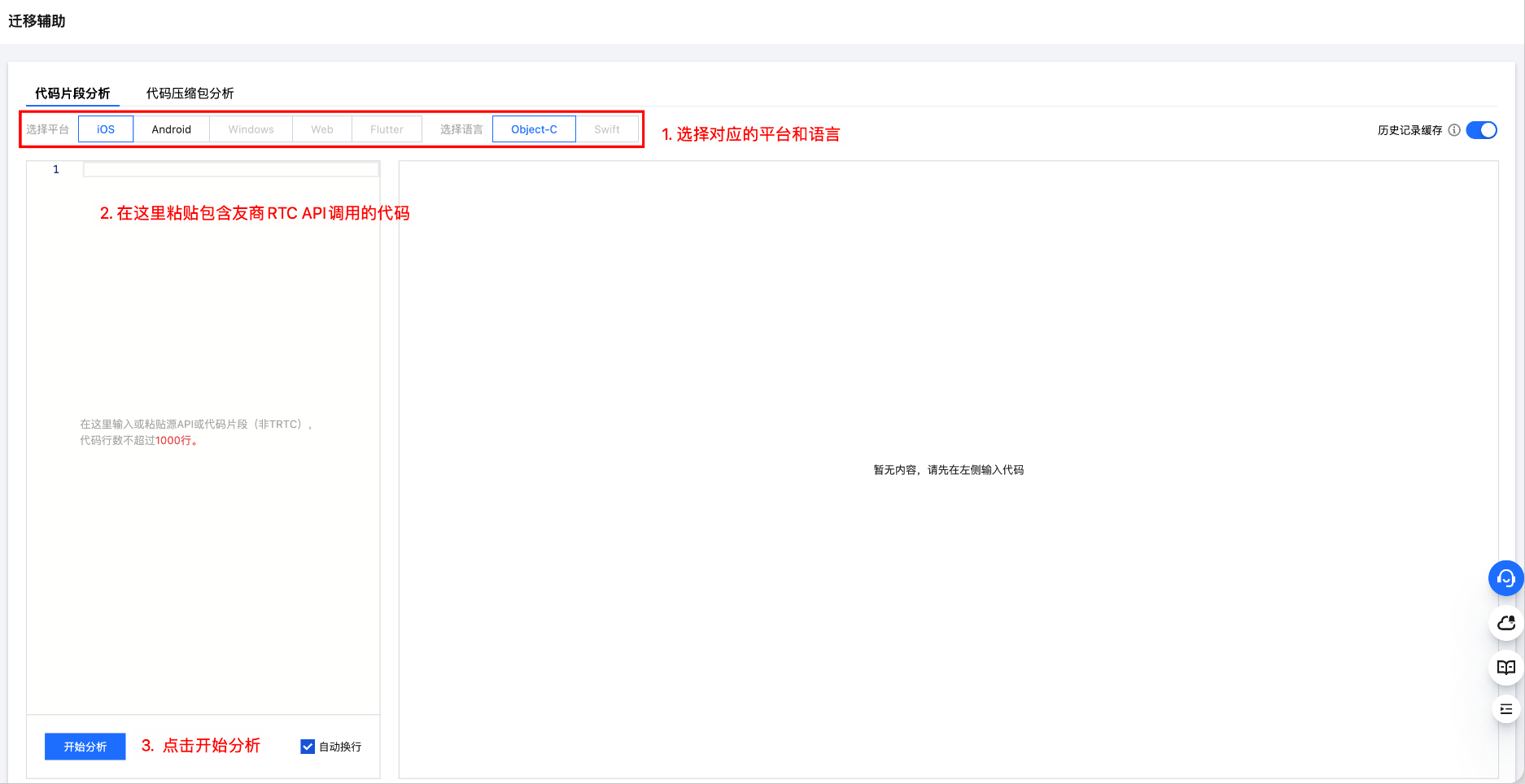 1. 进入迁移辅助 > 代码片段分析。