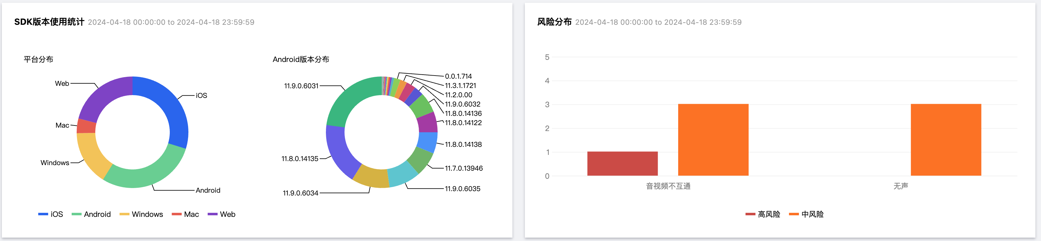 SDK 版本使用统计涉及巡检时间范围内,各个平台上 SDK 版本的使用情况;