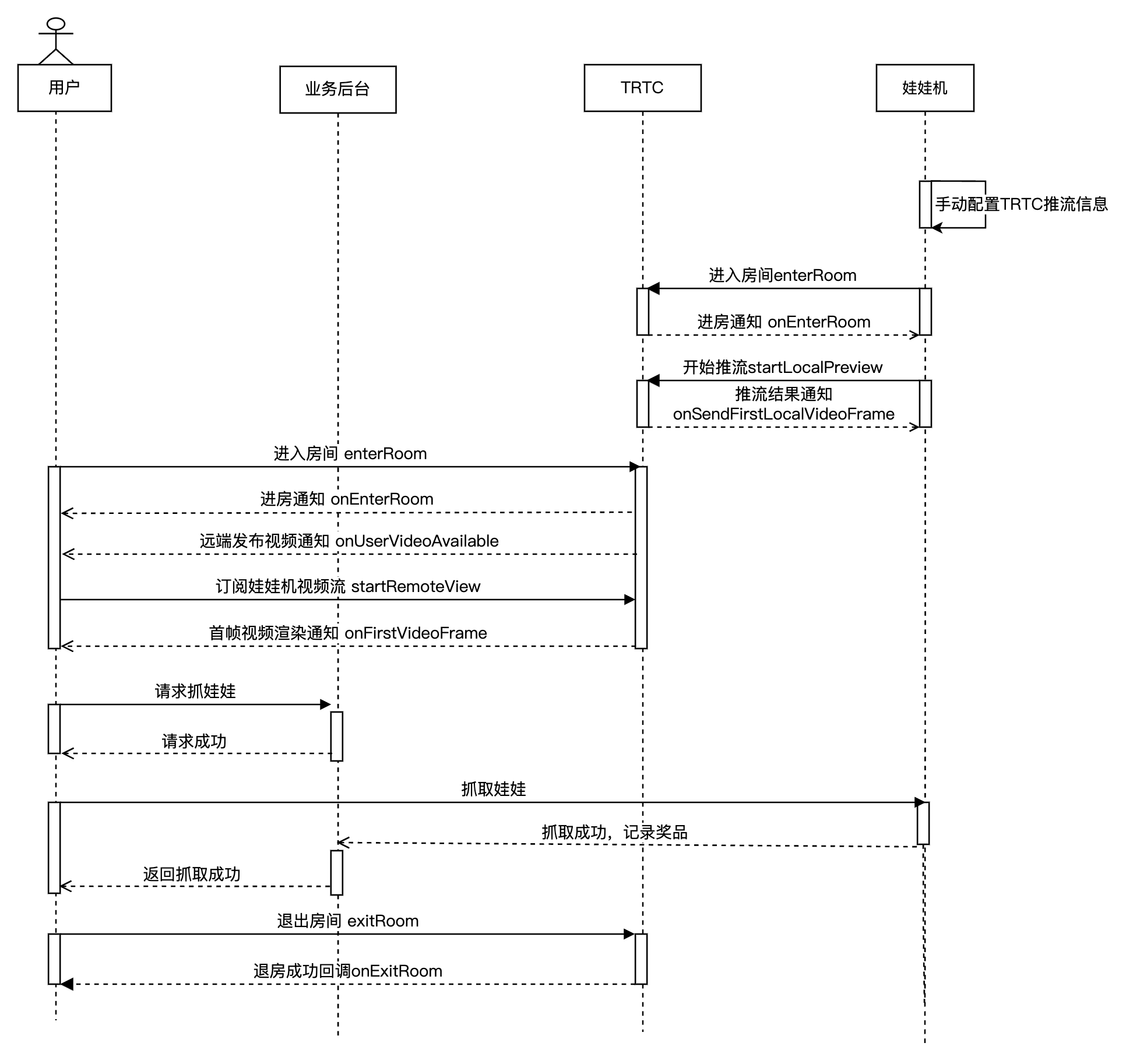 本节汇总了 在线娃娃机中一些常见的业务流程,帮助您更好地理解整个场景的实现过程。