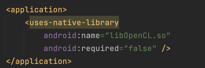 <uses-native-libraryandroid:name="libOpenCL.so"android:required="false" />//true 表示libOpenCL是当前app必需的。如果没有此库,系统将不允许app安装//false 表示libOpenCL不是当前app必需的。无论有没有此库,都可以正常安装app。如果设备有此库,美颜特效SDK里的GAN类型特效能正常生效(例如童话脸、国漫脸)。如果设备没有此库,GAN类型不会生效,但也不影响SDK内其他功能的使用。//关于uses-native-library的说明,请参考Android 官网介绍:https://developer.android.com/guide/topics/manifest/uses-native-library-element