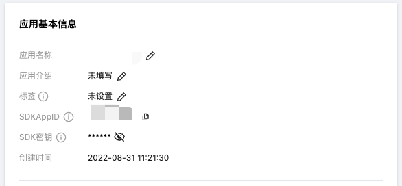 2. 应用创建完毕之后,您可以在 应用管理 的应用概览栏目看到该应用的基本信息,其中需要您保管好 SDKAppID、SDK密钥便于后续使用,同时应避免密钥泄露造成流量盗刷。