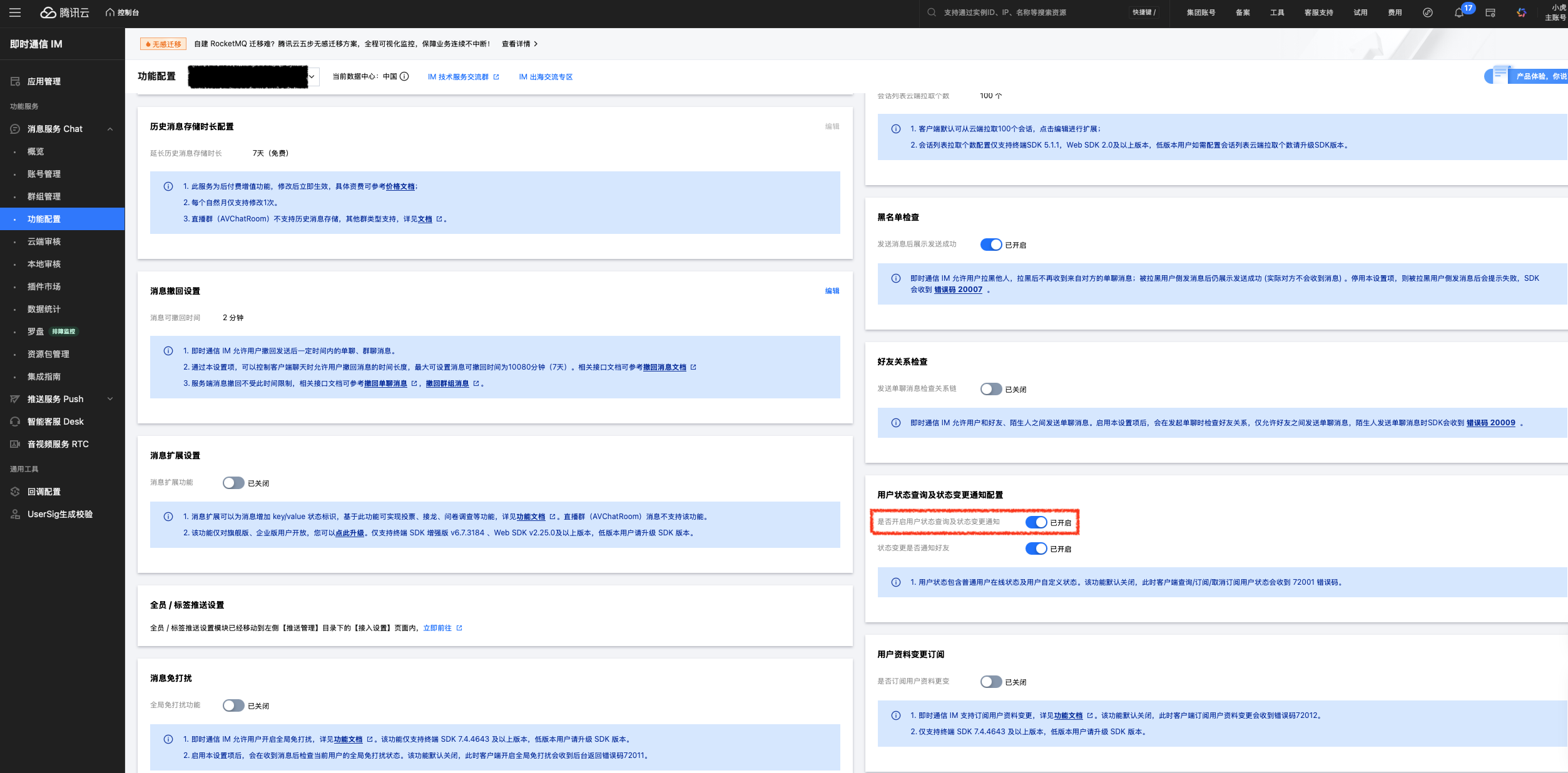 订阅用户状态需要提前在 即时通信 IM 控制台 开启 “用户状态查询及状态变更通知”,如果开关关闭,调用