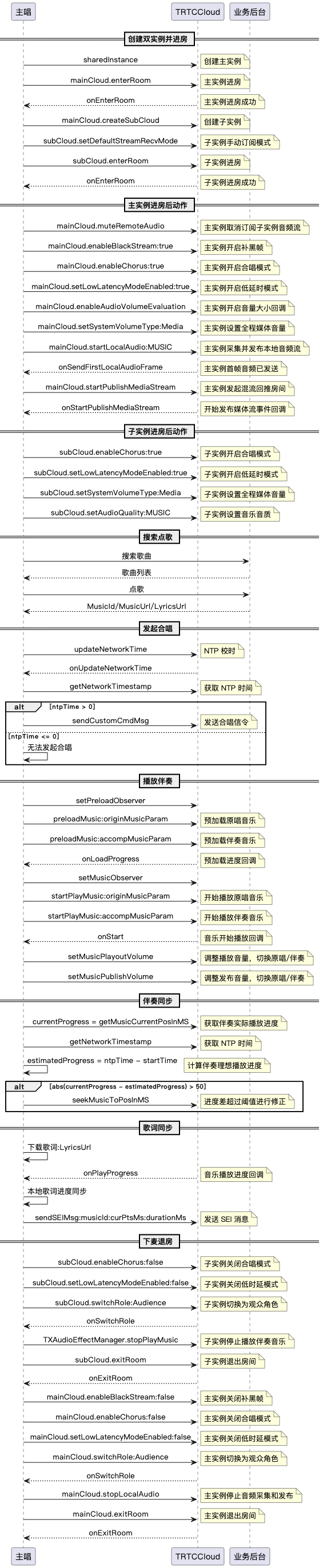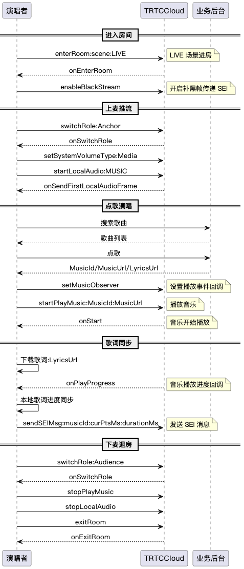 本节汇总了在线 K 歌中一些常见的业务流程,帮助您更好地理解整个场景的实现流程。