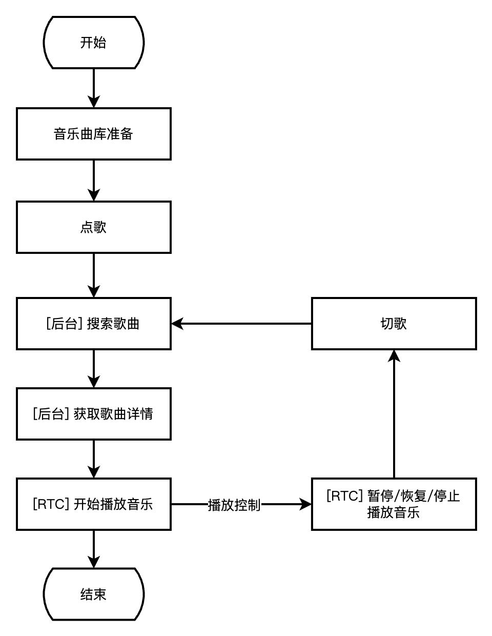 下图展示了业务侧结合音乐曲库进行点歌,并使用 TRTC SDK 进行播放的流程。