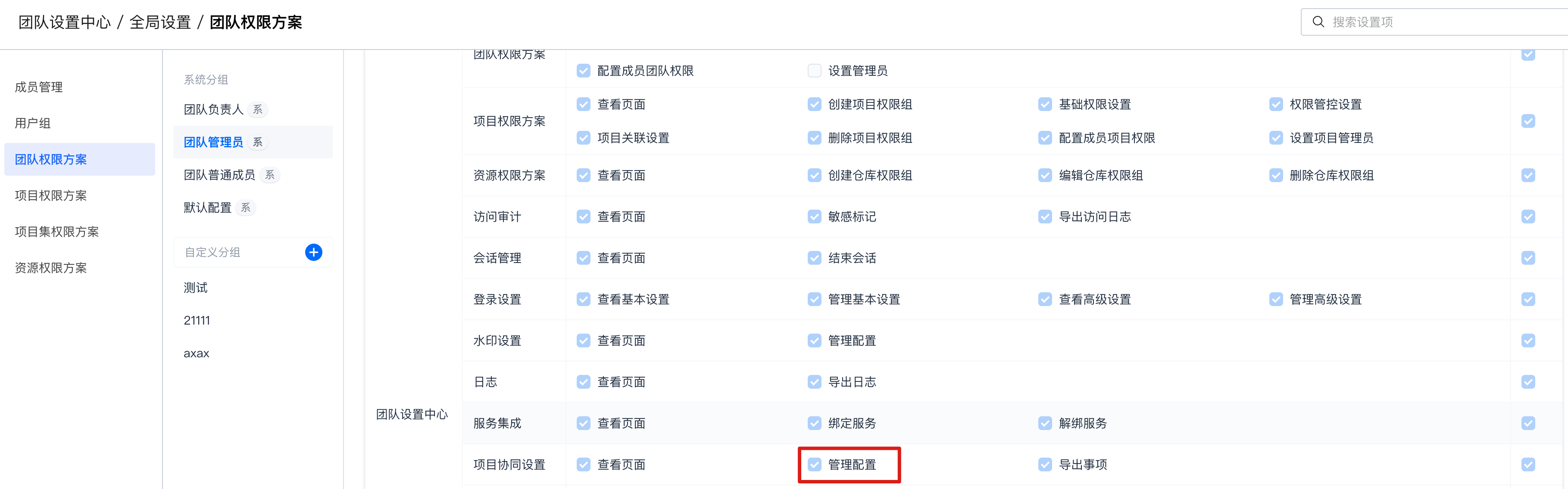 由于全局属性设置影响整个团队的事项类型属性,因此仅有具有对应团队权限点的成员才能修改或添加自定义属性,可单击左下角的团队设置中心,在全局设置>组织与成员 > 团队权限方案 > 权限配置中查看详情。