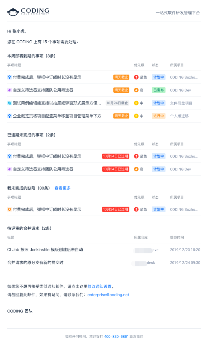 腾讯云 CODING 支持团队负责人及管理员在团队内发布公告,公告有效期内团队成员可以查看公告通知。
