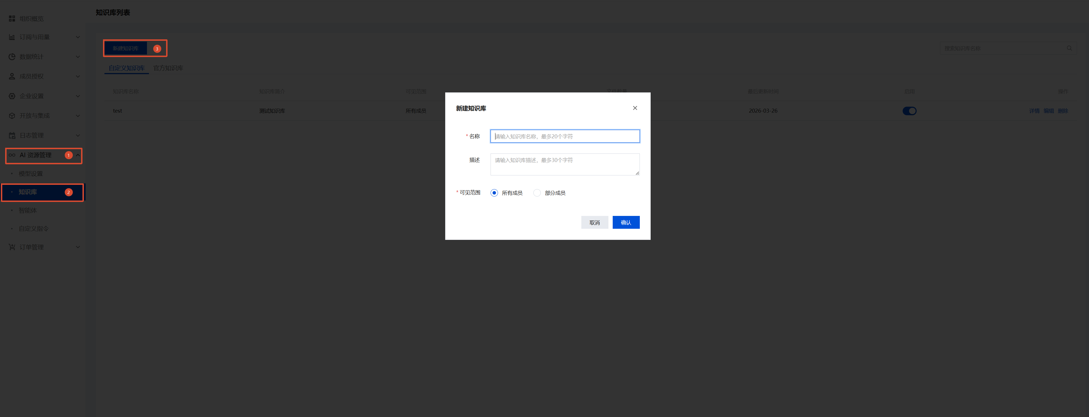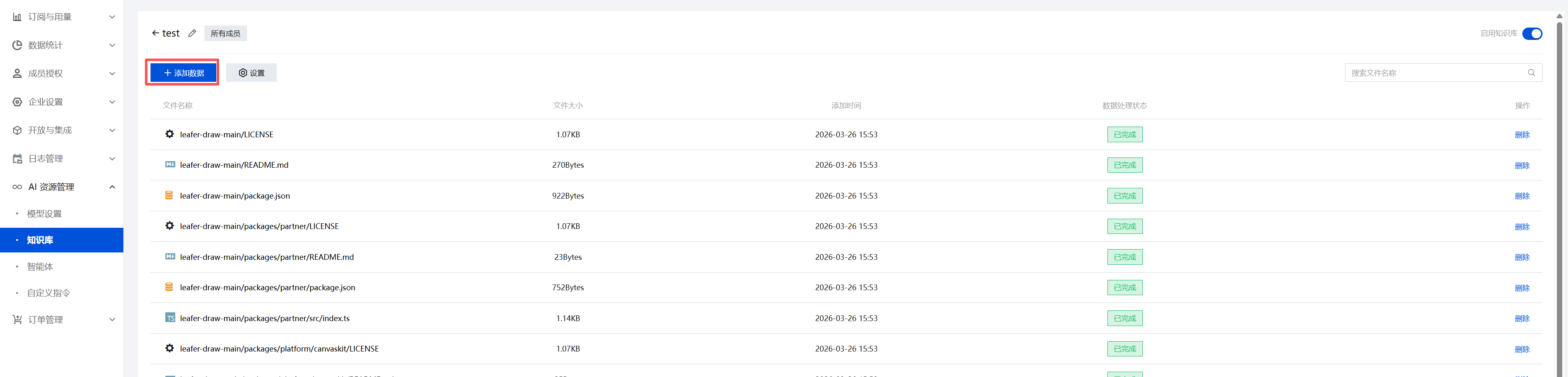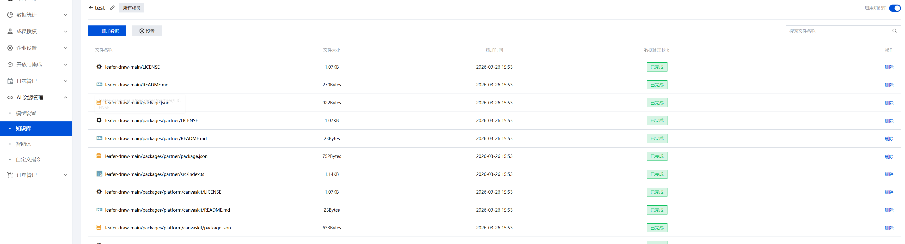 从知识库列表编辑:在知识库列表中选择对应知识库,单击编辑,即可进入知识库编辑模式。