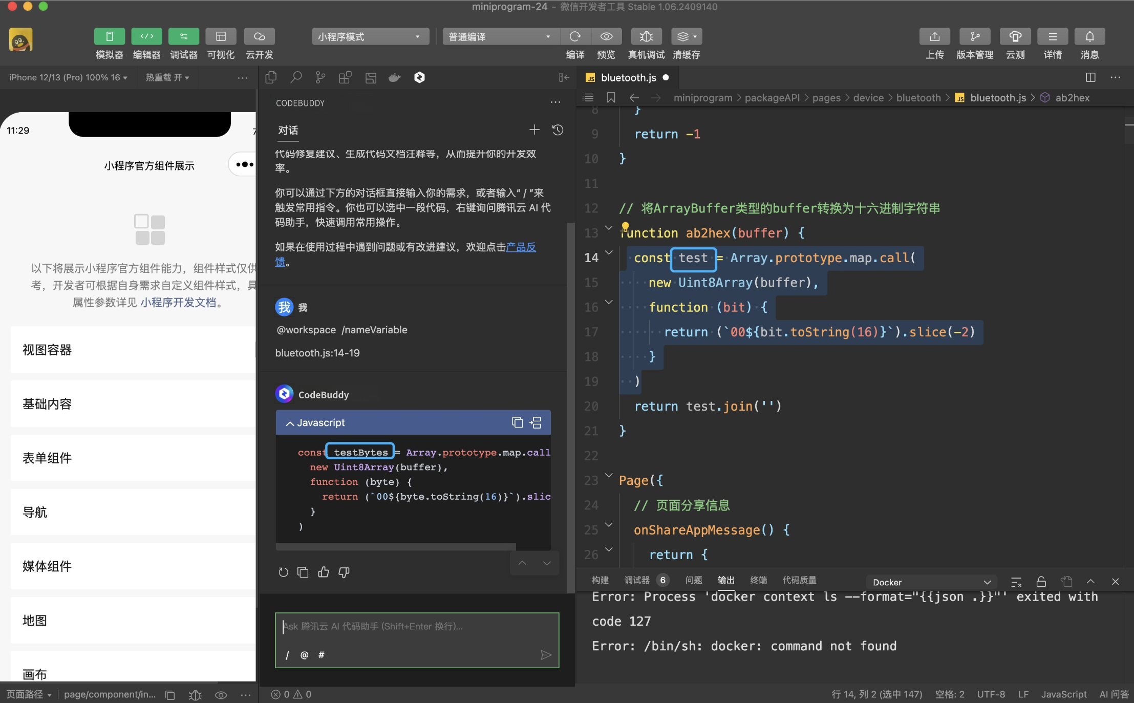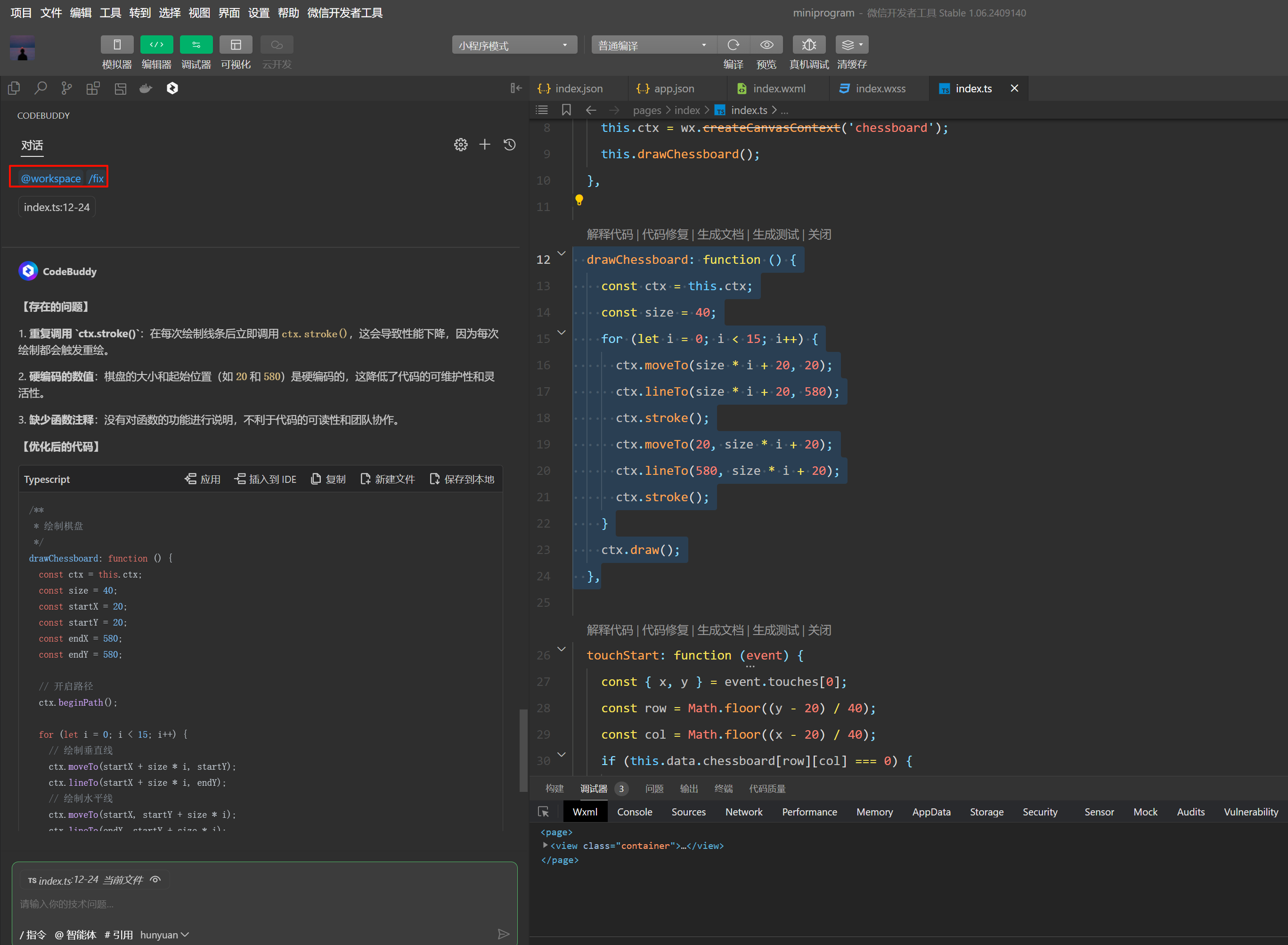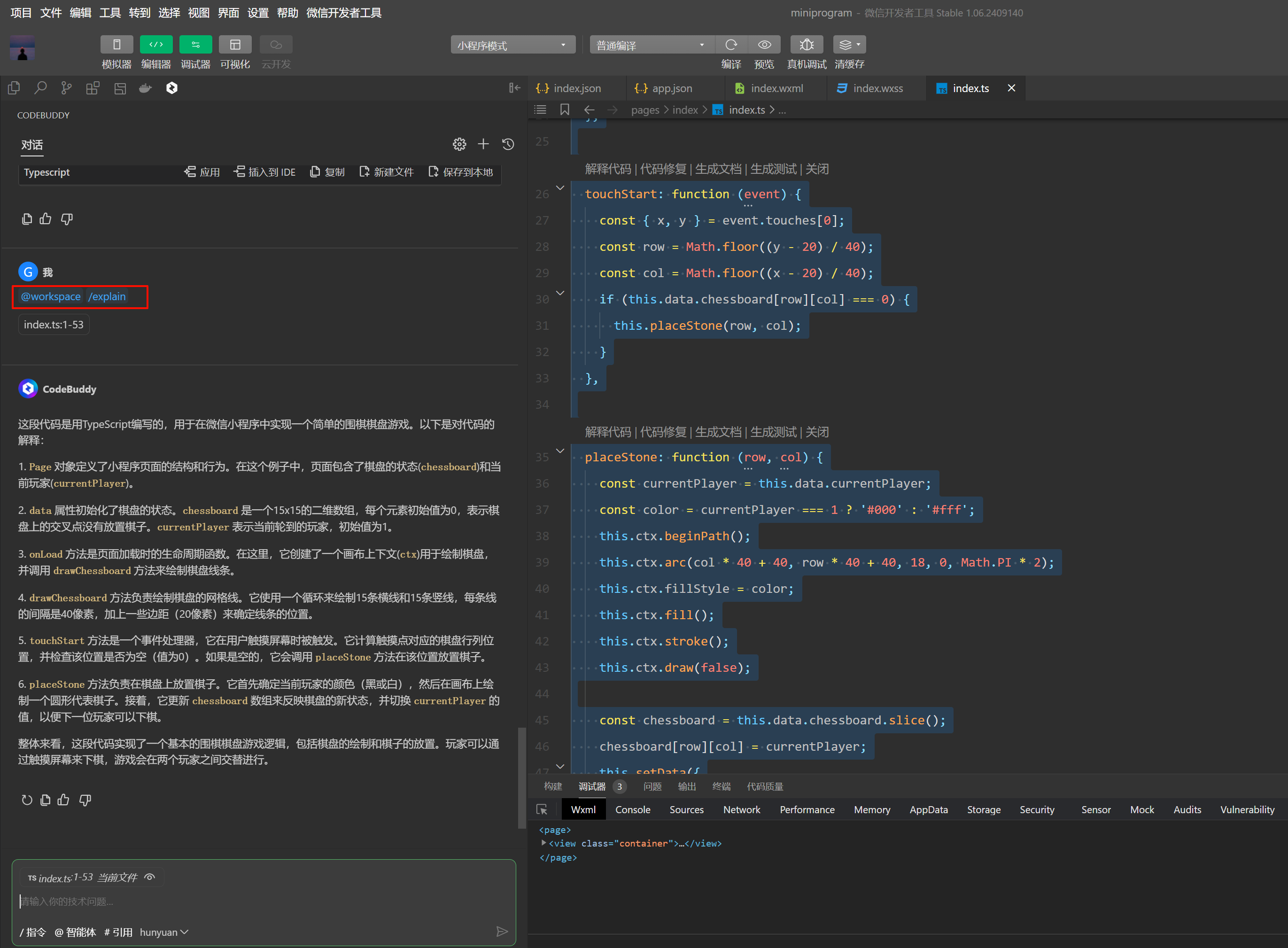 腾讯云代码助手的技术对话功能,与微信开发者 IDE 做了深度的融合,并享用和 VSCode 一致的交互操作。
