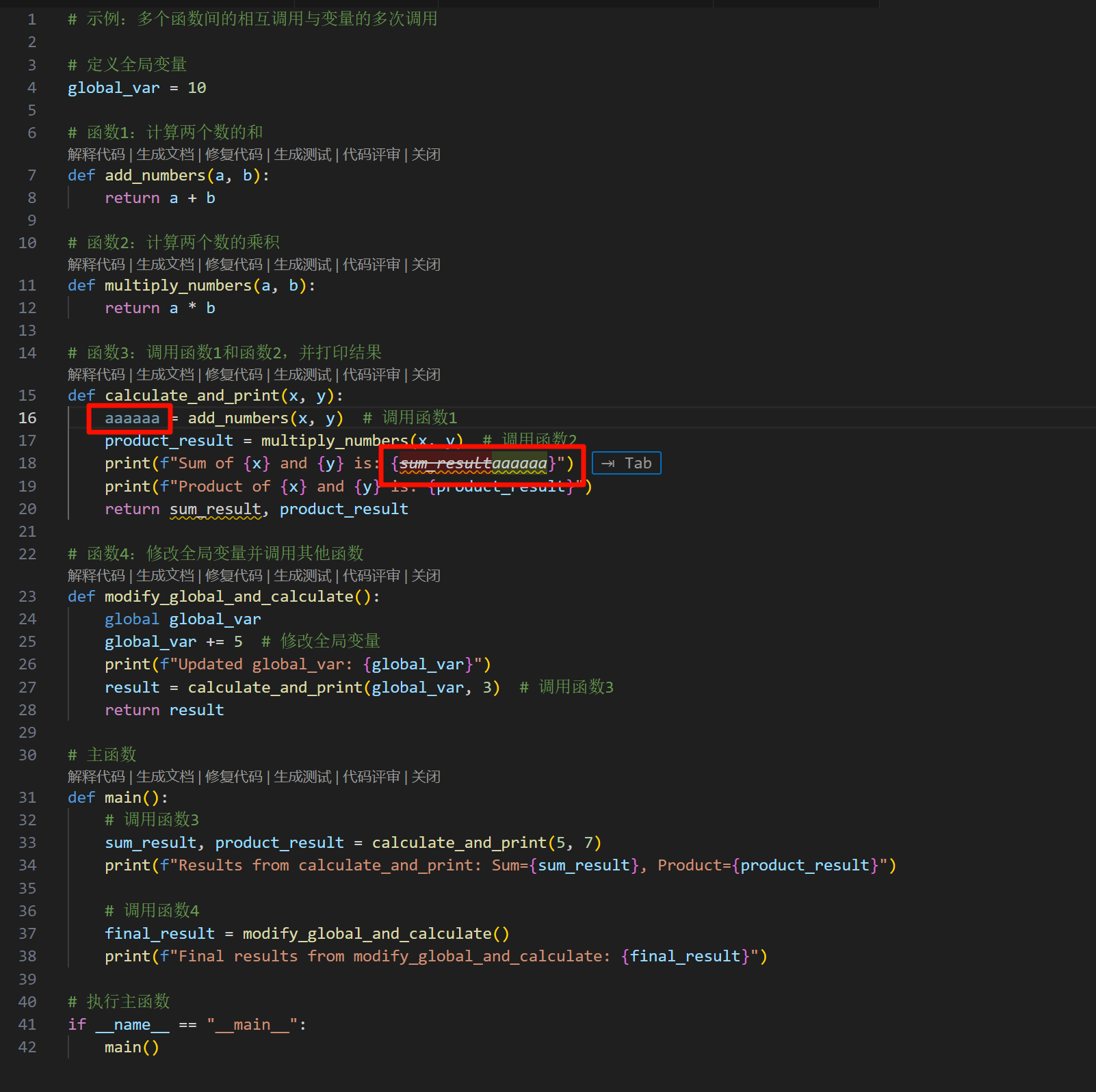 修改变量名后,根据光标的移动,以及代码情况,捕捉到上下文后,在合理的光标位置出现补全推荐。