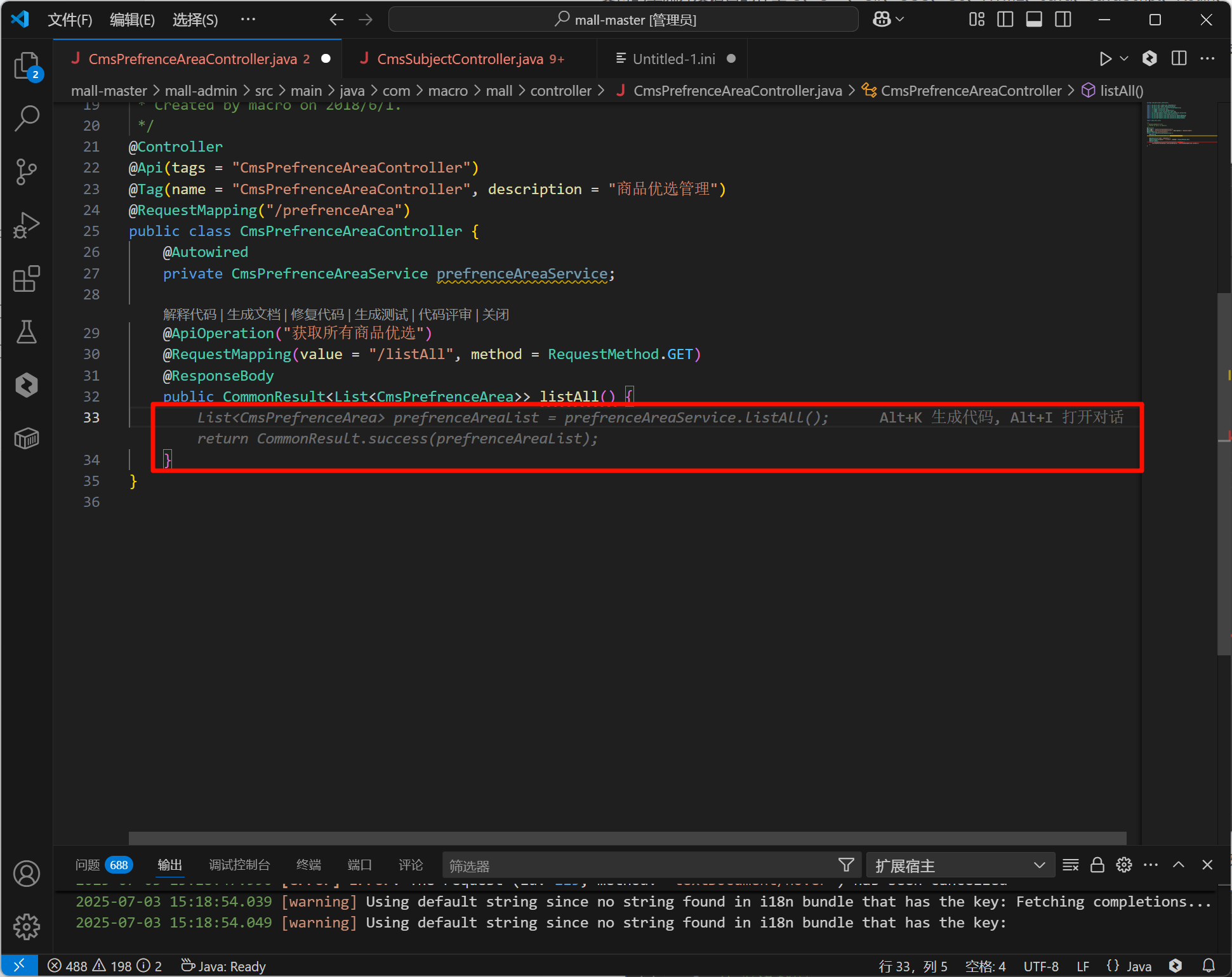 按行采纳推荐代码 | ⌘ + ↓ | Ctrl + ↓ |