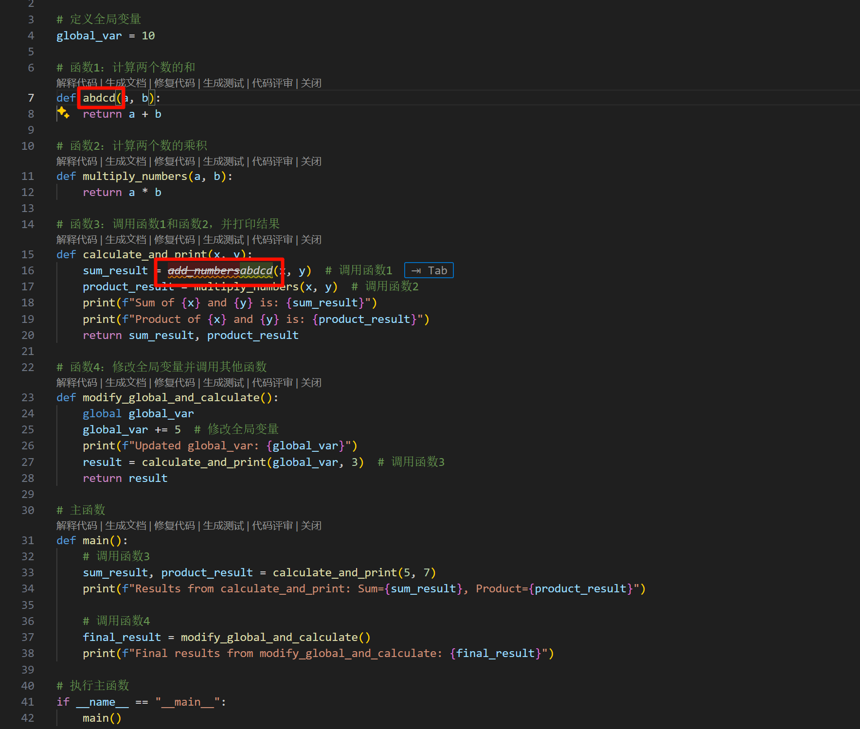函数或方法名修改后,在引用处,通过光标的定位,自动触发补全 pro。