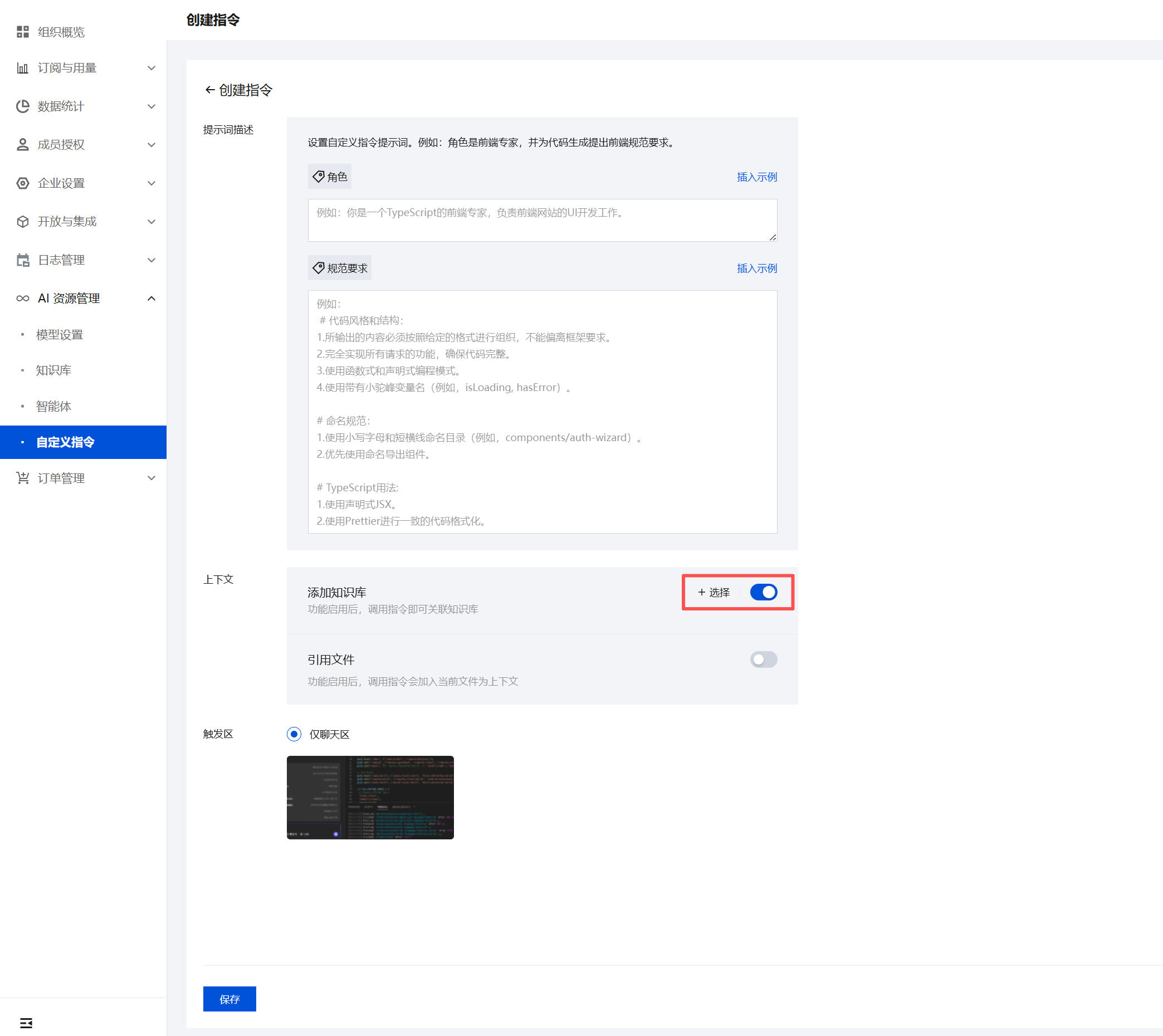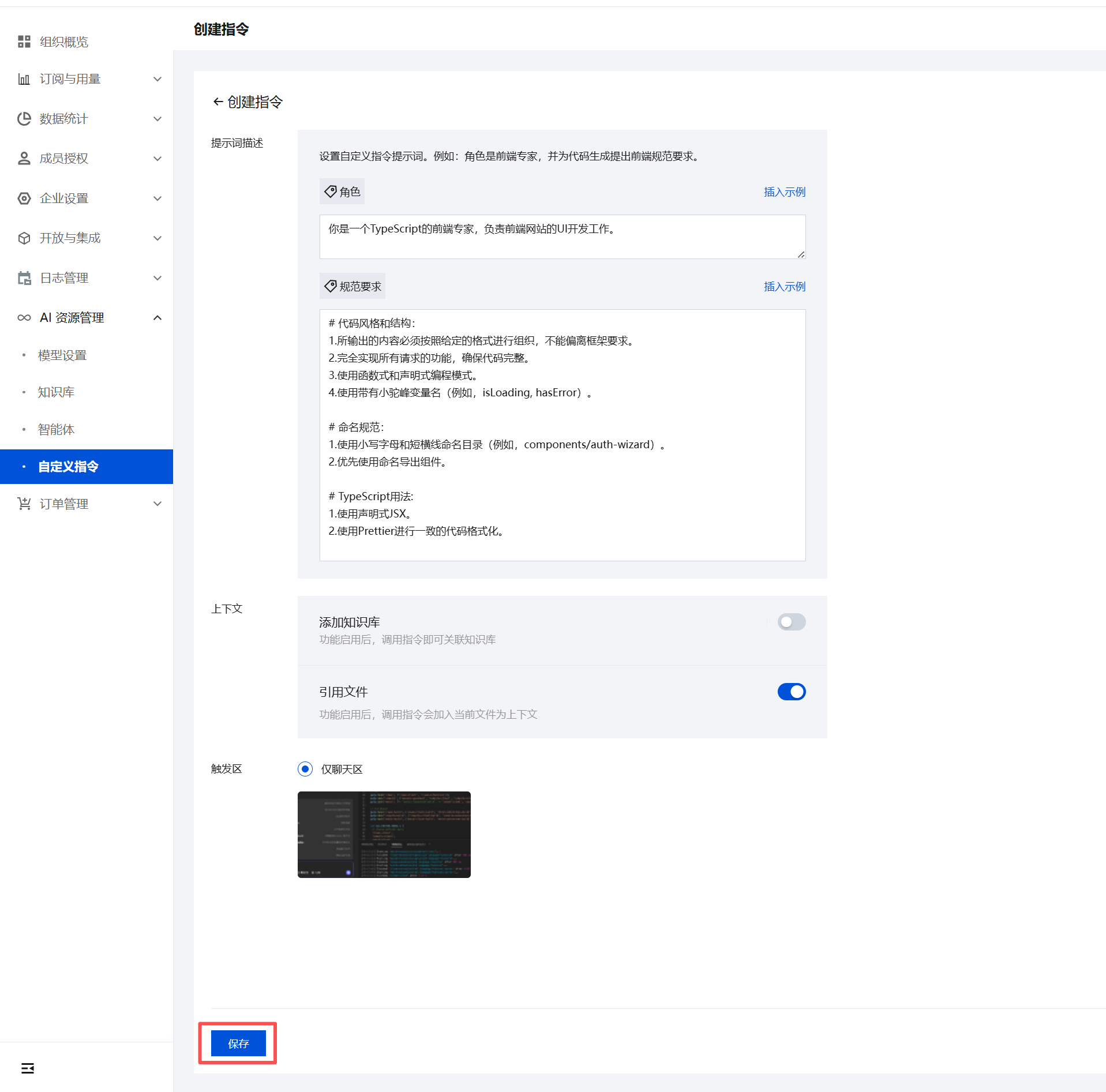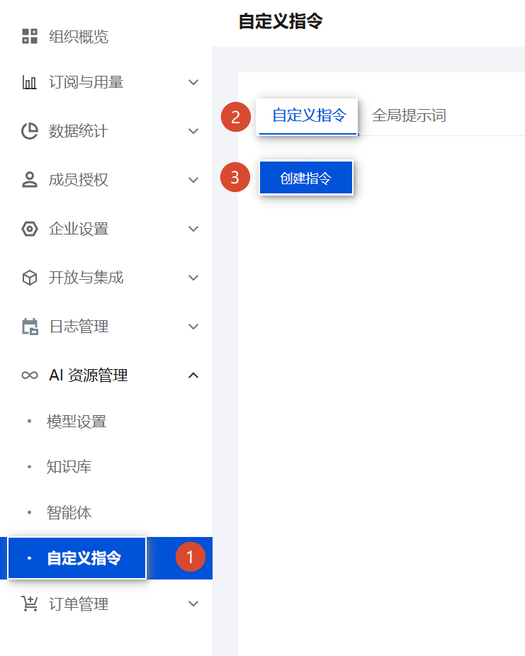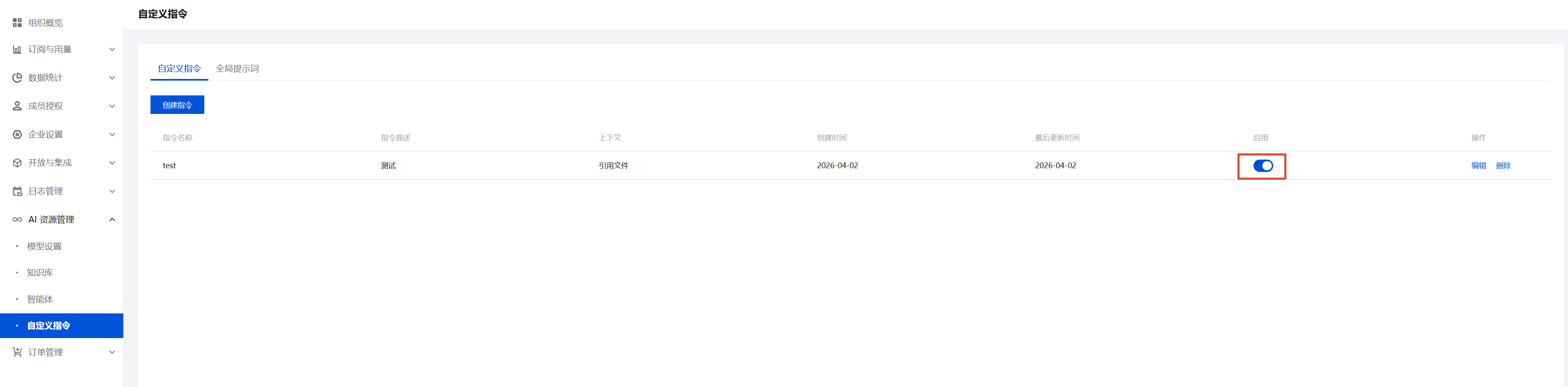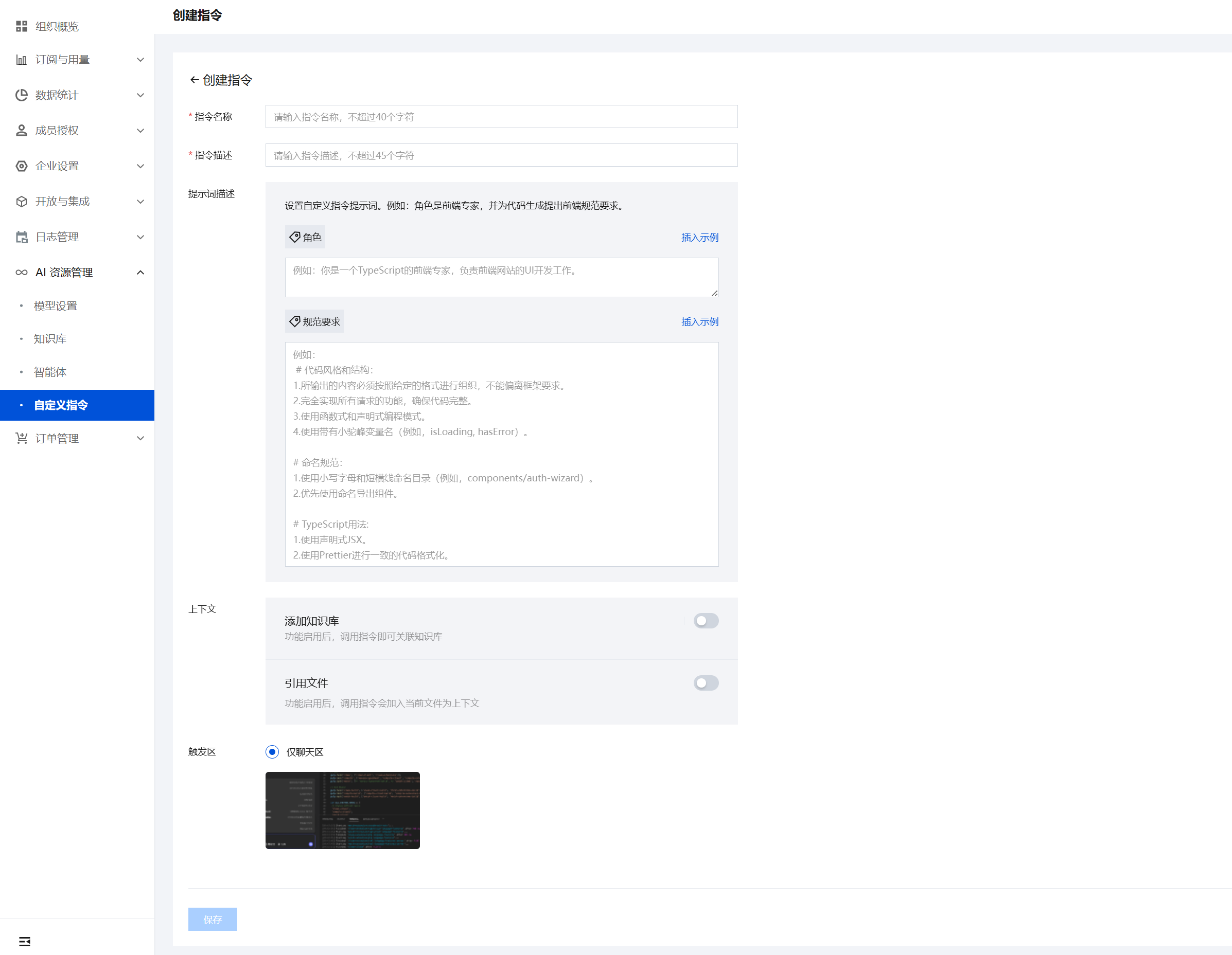 自定义指令和全局提示词目前仅支持企业账号使用。