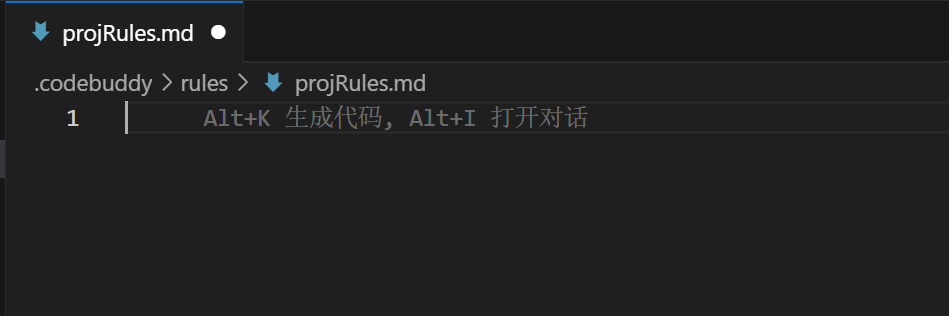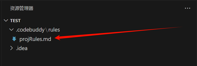 CodeBuddy 默认已经启用 Rules 功能,无需手动开启,允许您自定义项目级别的 Rules。当您首次启动项目时,CodeBuddy 会自动在项目根目录下创建 .codebuddy/rules 目录,您可以在该目录下创建 Rules 文件,例如: