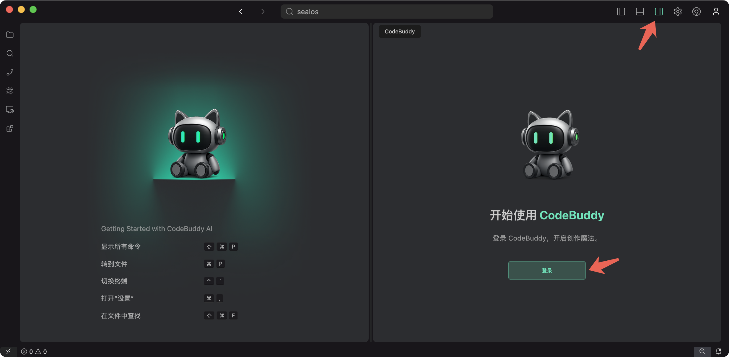 1. 打开 IDE,单击登录。