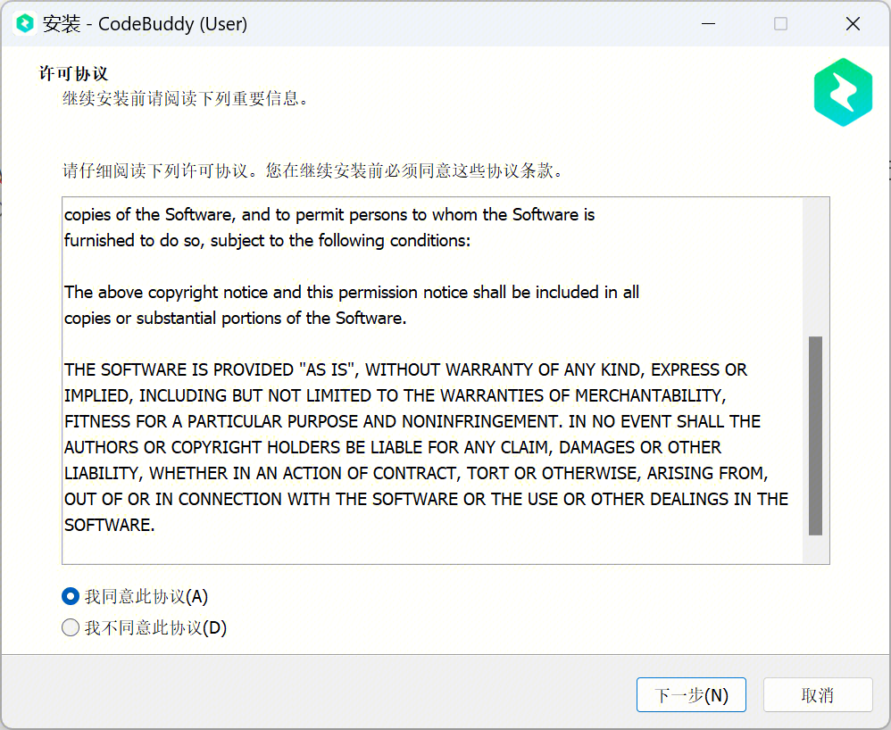 1. 下载安装包后,双击 exe 安装包,接受协议。