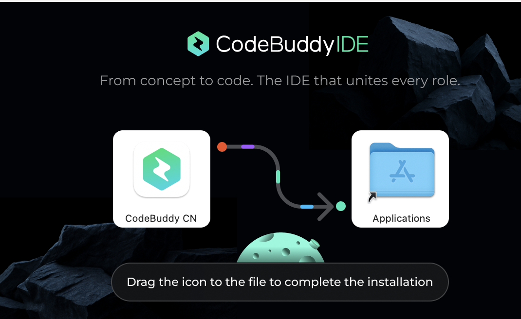 将左侧安装包拖转到 Applications 中进行安装即可。