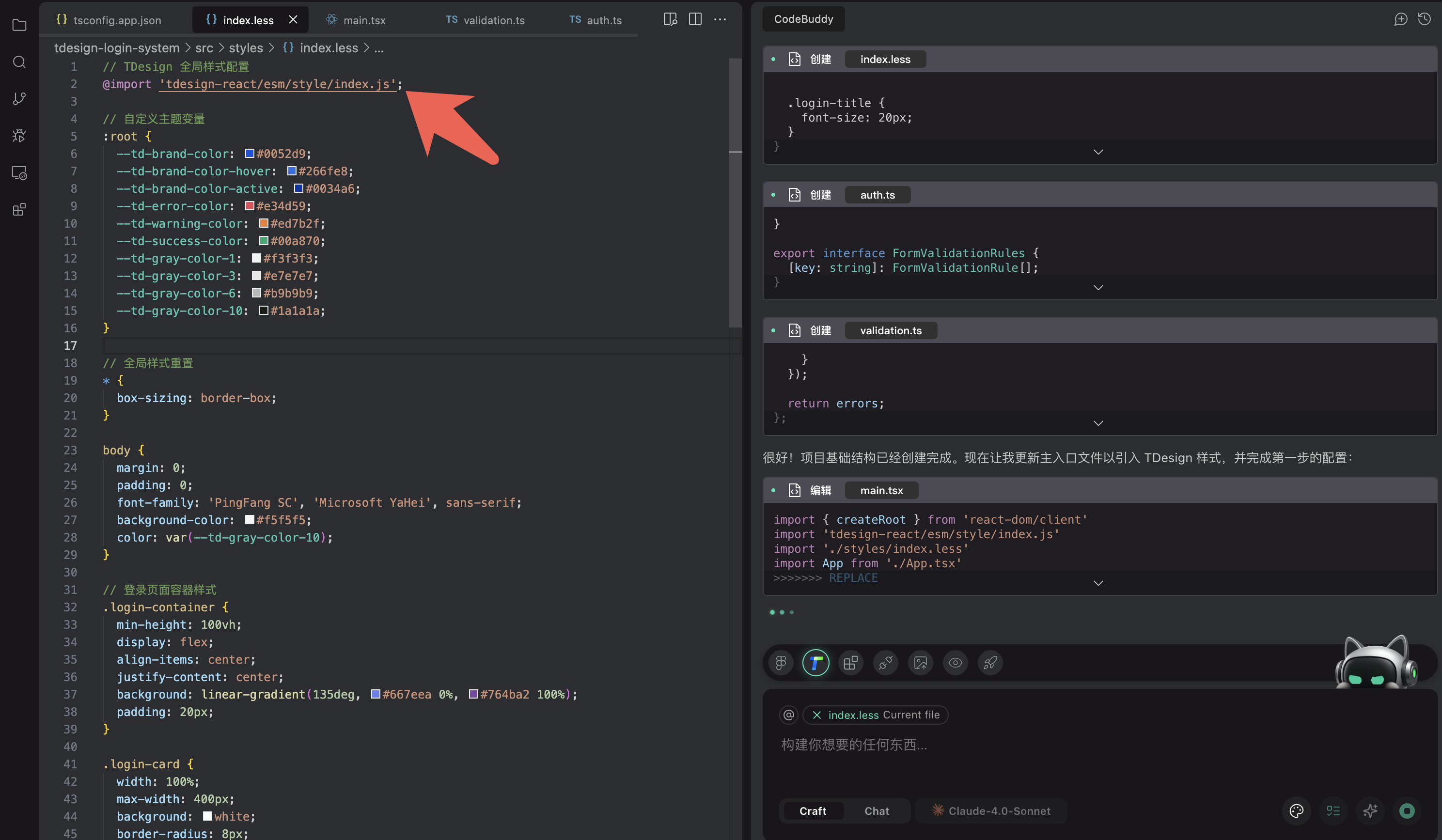2. Agent 根据需求引用组件自动生成代码,如下引用 TDesign 设计组件。