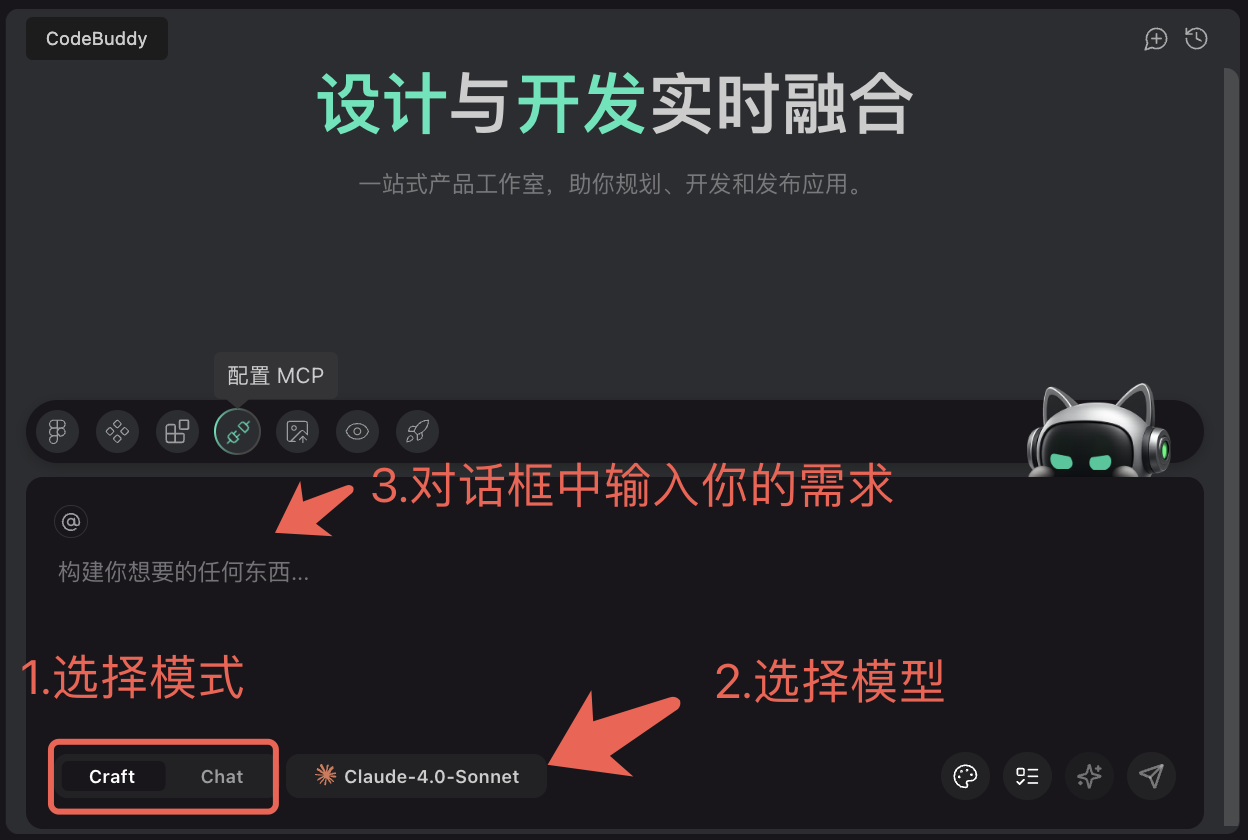 Craft 模式:相比 Chat 模式, Craft 模式不再是一个对话聊天机器人工具,而是一个具有 “独立思考” 和 “自主执行” 的编程伙伴。