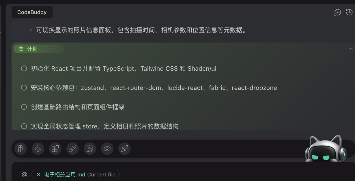 1. 以 Craft 模式为例,描述“我想制作一个电子相册”,可以选择开启计划模式,单击 Boost Prompt 一键优化 Prompt。