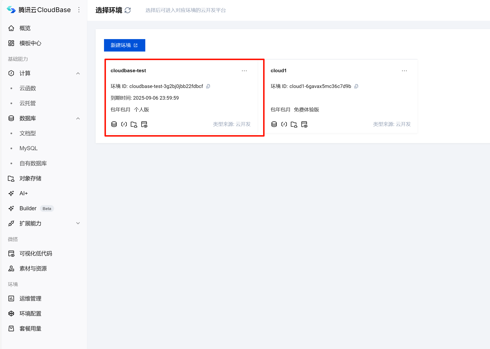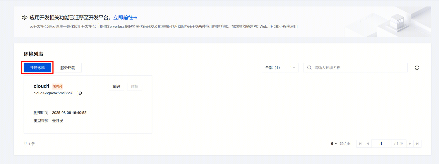 2. 选择已经开通成功的云开发环境。如果还没有,则请开通。
