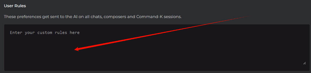 在 User Rules 中,可以定义您的个人偏好,例如编码风格、通用要求、常用指令或习惯。定义好后,这些 Rules 将会自动发送给 AI 模型,应用到所有的对话场景之中。并且定义的这些 Rules 将在您的 CodeBuddy IDE 账户中全局生效,无论当前是在哪个项目。