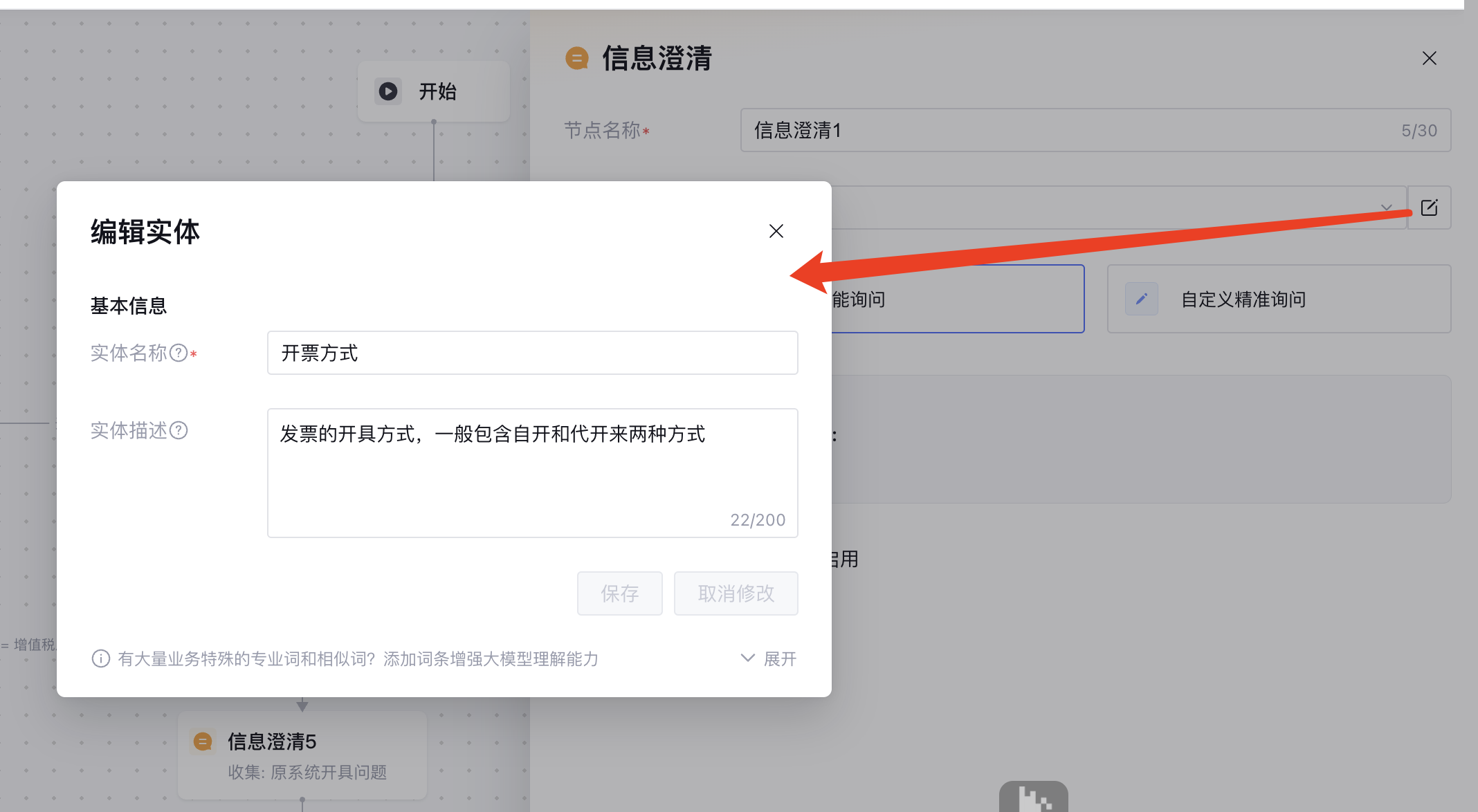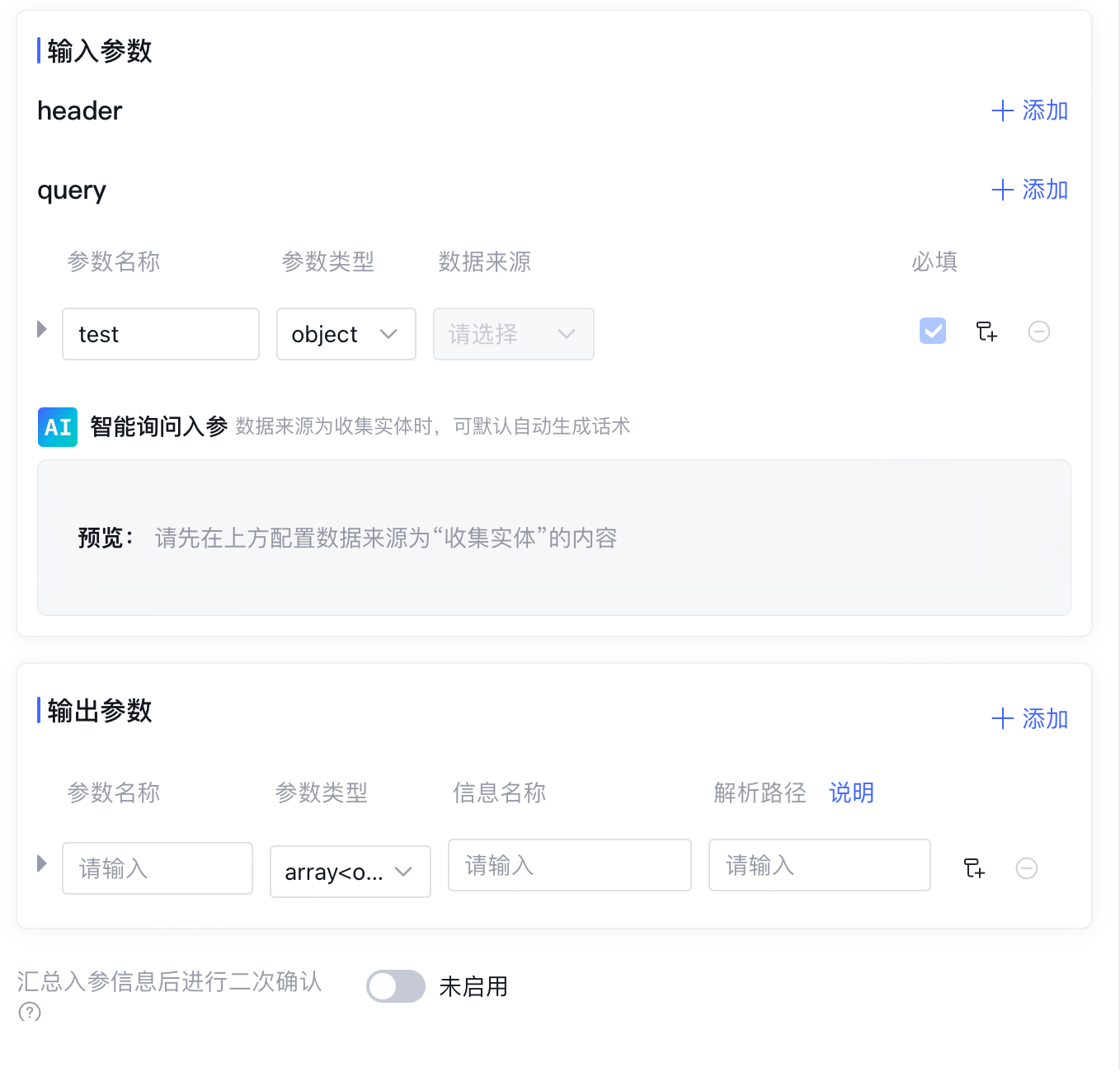 收集实体:可选择已有实体或者新增实体,大模型根据对话中识别到的实体填充到对应参数。