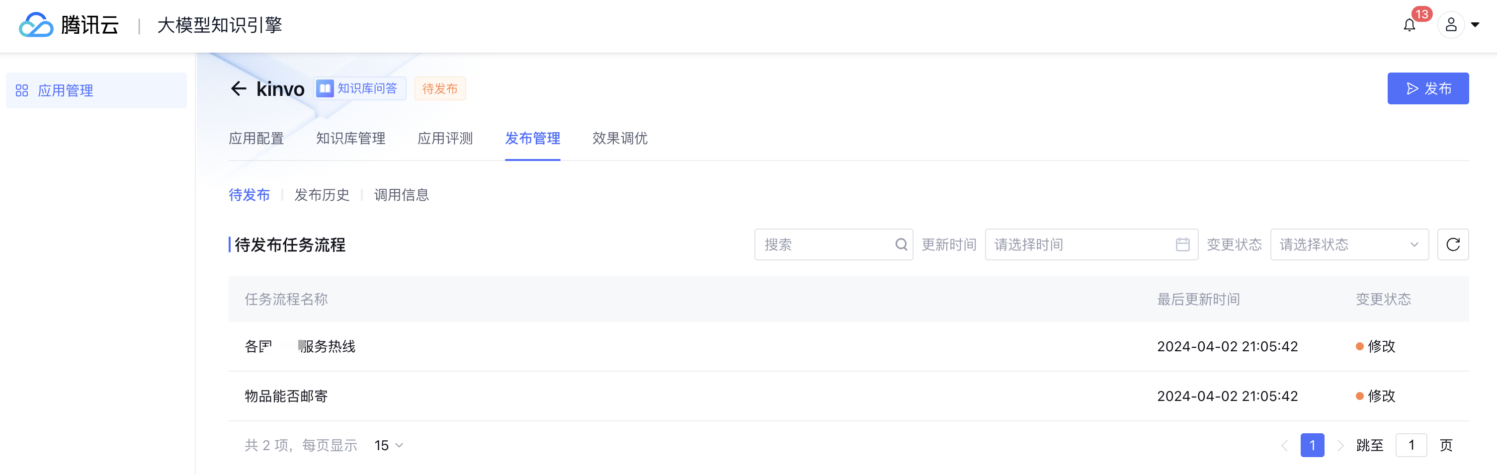 如果期望流程在线上生产环境生效,需要在保存到测试环境后另外在发布中心发布,发布成功即可体验。