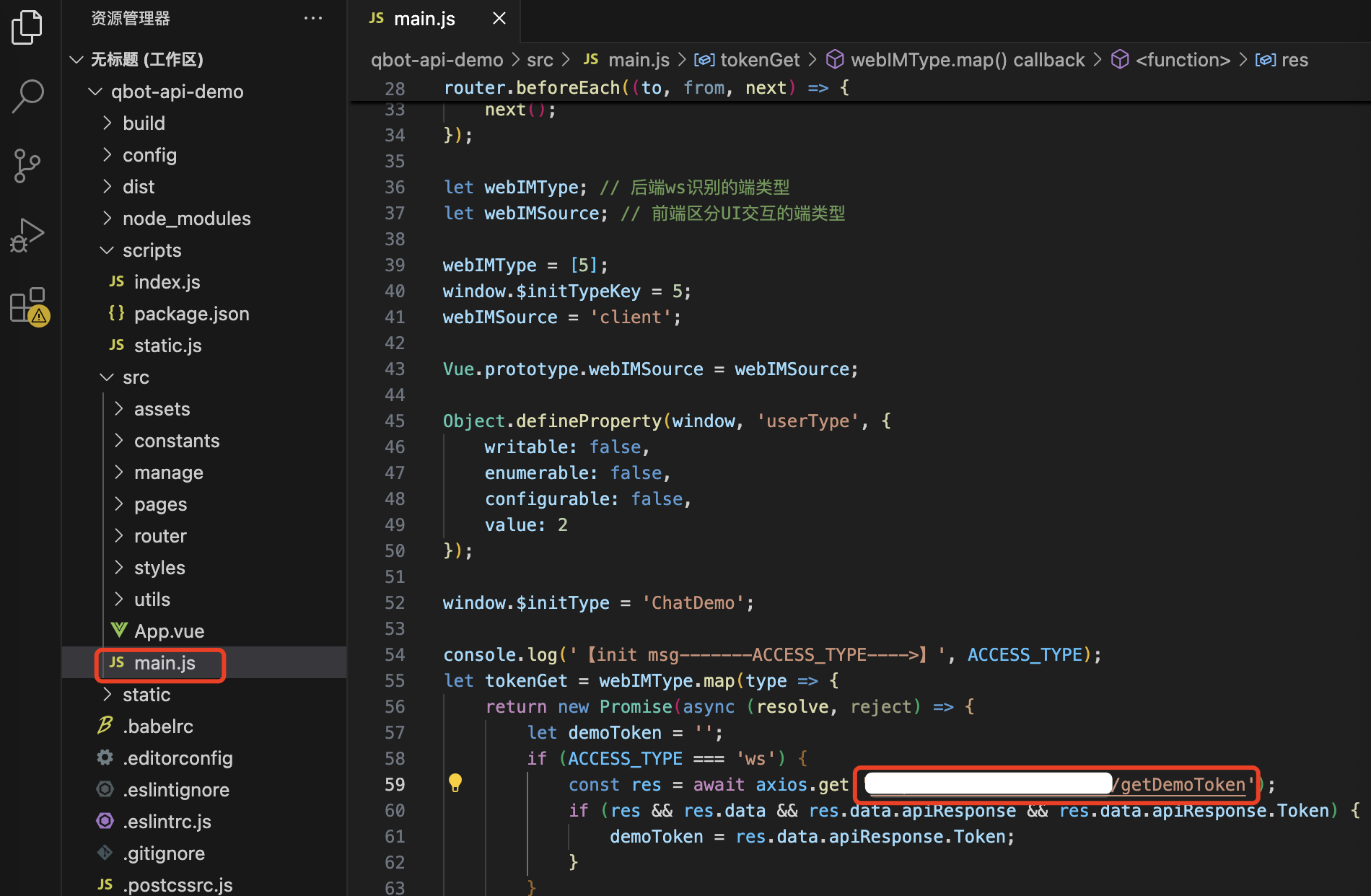 4. 将代码中 node 服务的地址,替换为{您的 web server 具体的地址}/getDemoToken,例如
