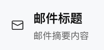 <ListViewItem gap="16px" align="center"><Icon name="mail" size="lg" /><Col gap="4px" flex={1}><Text value="邮件标题" weight="semibold" /><Caption value="邮件摘要内容" /></Col></ListViewItem>