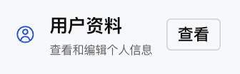 <ListView><ListViewItemgap="16px"align="center"onClickAction={{type: "sys.go_to_url",payload: { url: "/profile" }}}><Icon name="profile" size="lg" color="#0052D9" /><Col gap="4px" flex={1}><Text value="用户资料" size="md" weight="semibold" /><Caption value="查看和编辑个人信息" size="sm" /></Col><Button label="查看" variant="outline" size="sm" /></ListViewItem></ListView>