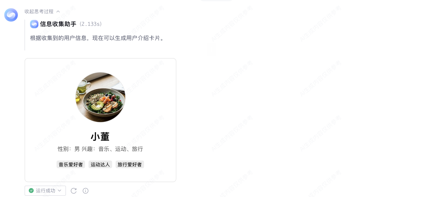 Agent 输出格式选择身份信息介绍 Widget。