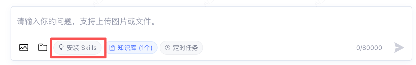在 ClawPro 的对话界面中,您可以通过以下方式安装 Skills: