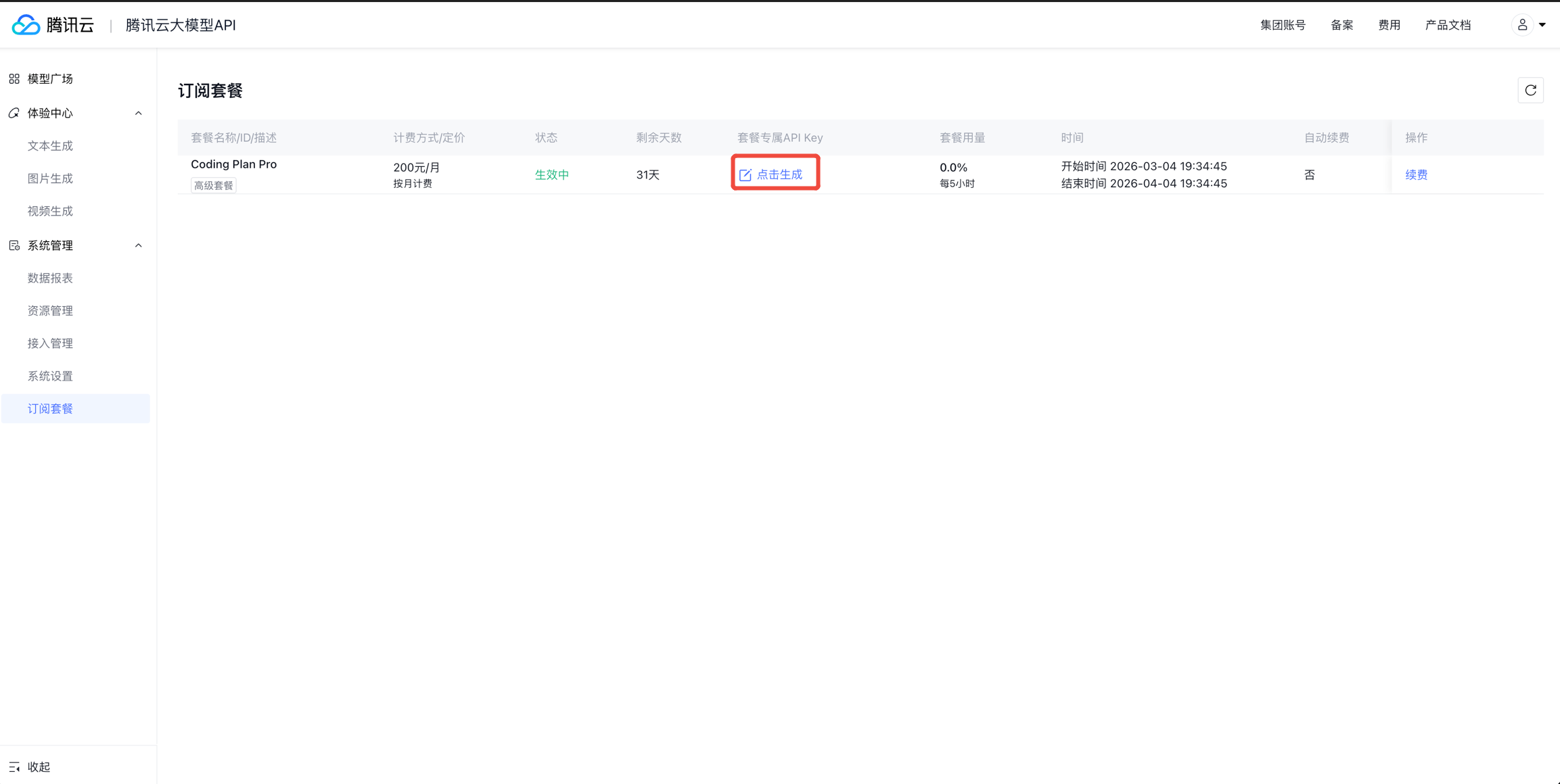 需要获取并配置套餐专属的 API Key 和 Base URL,才能正确使用并抵扣套餐额度。