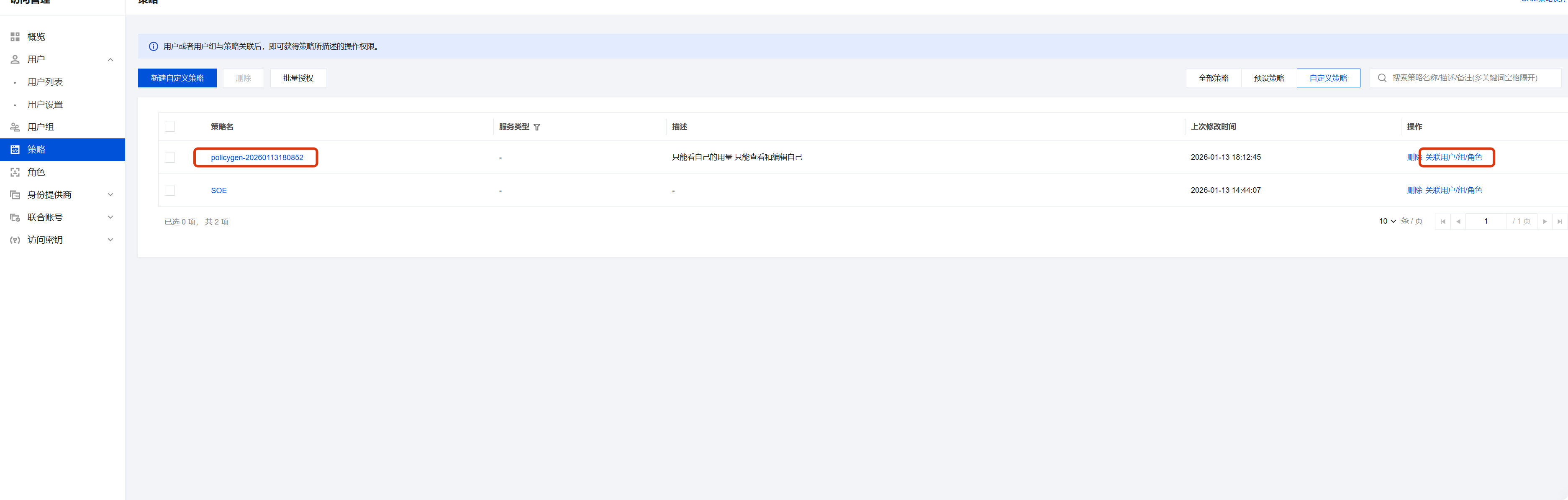 方式一:在策略列表中关联相关用户