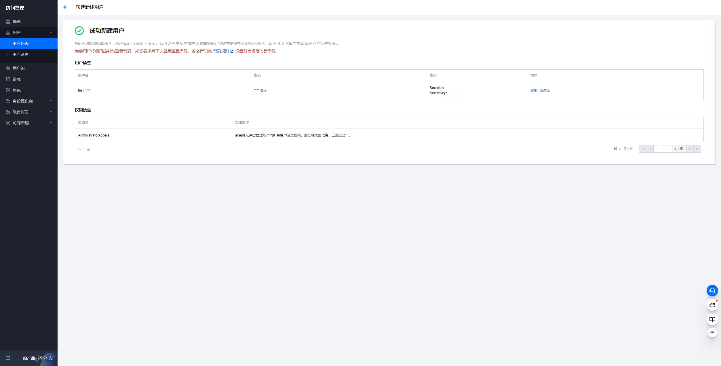1. 重新进入用户列表可查看创建的用户