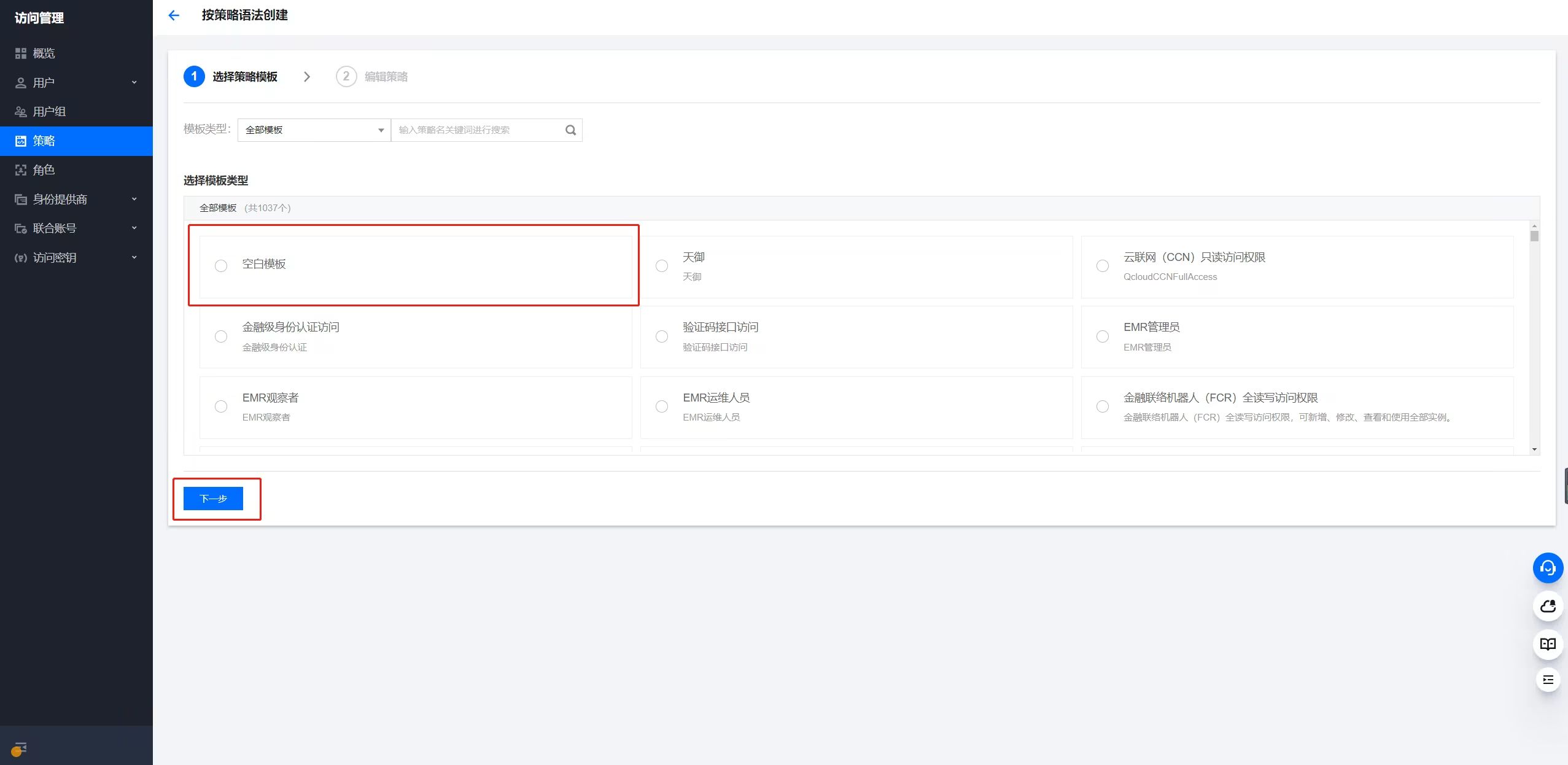 第二步:选择策略类型