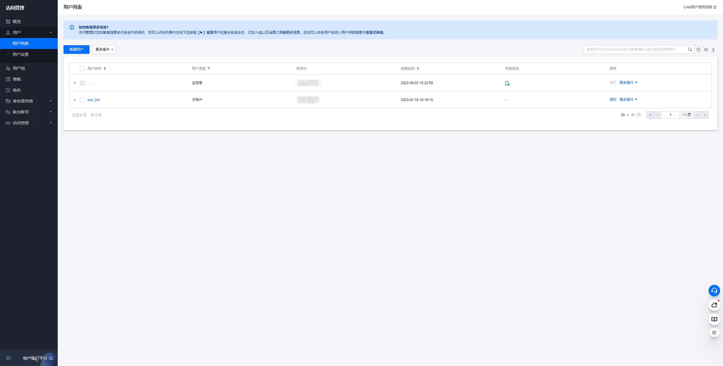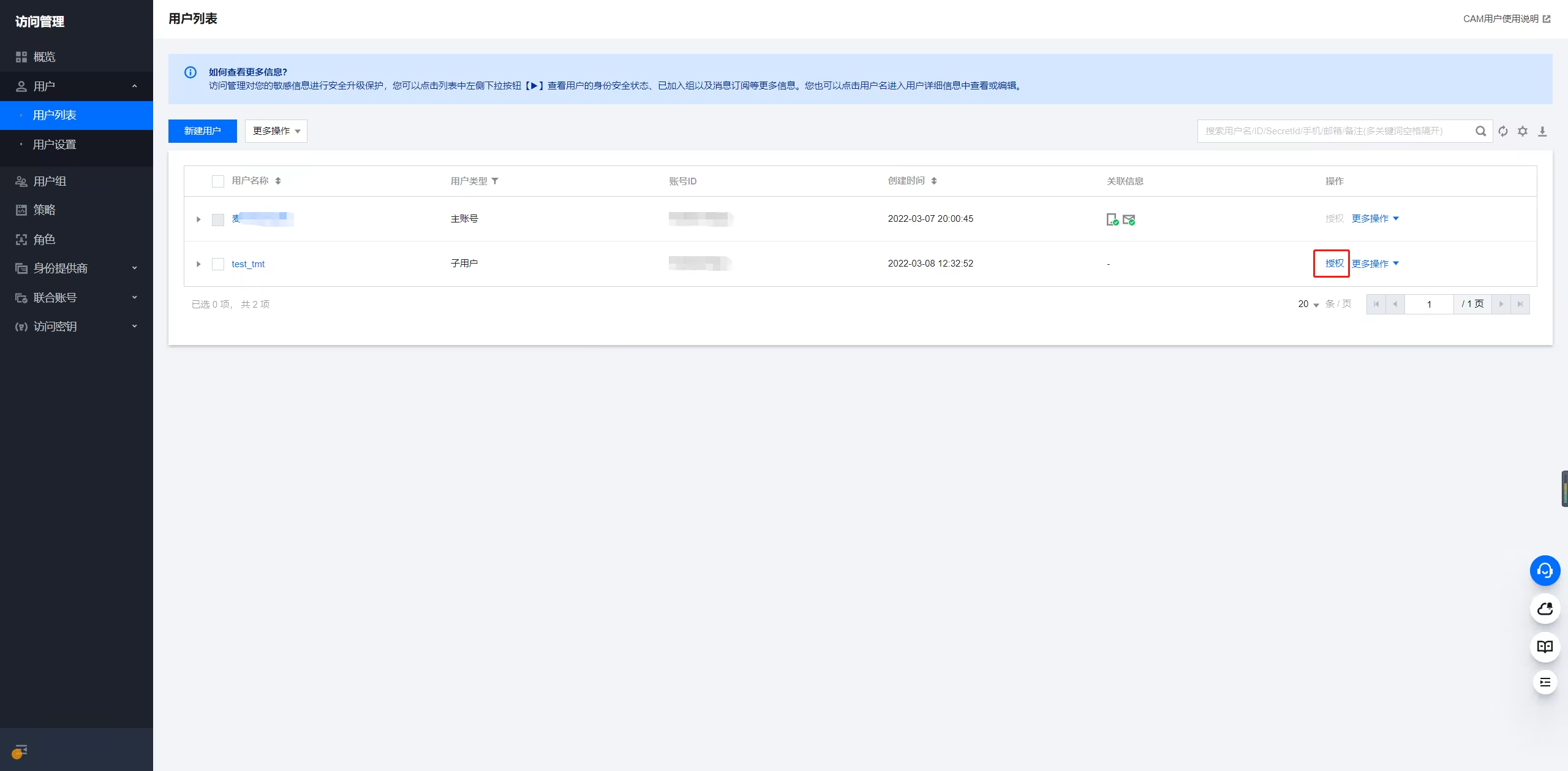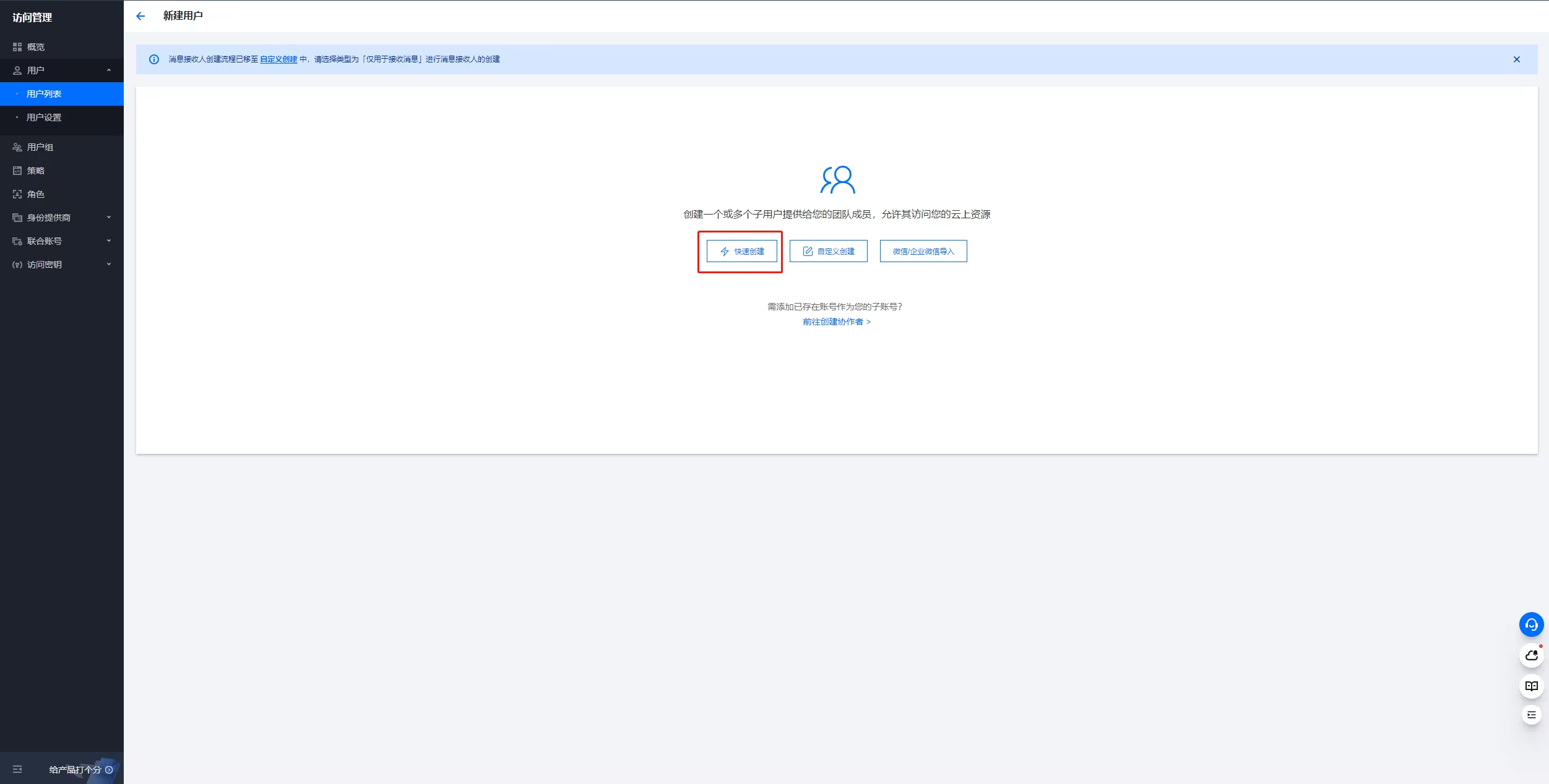 创建子账号(用户)