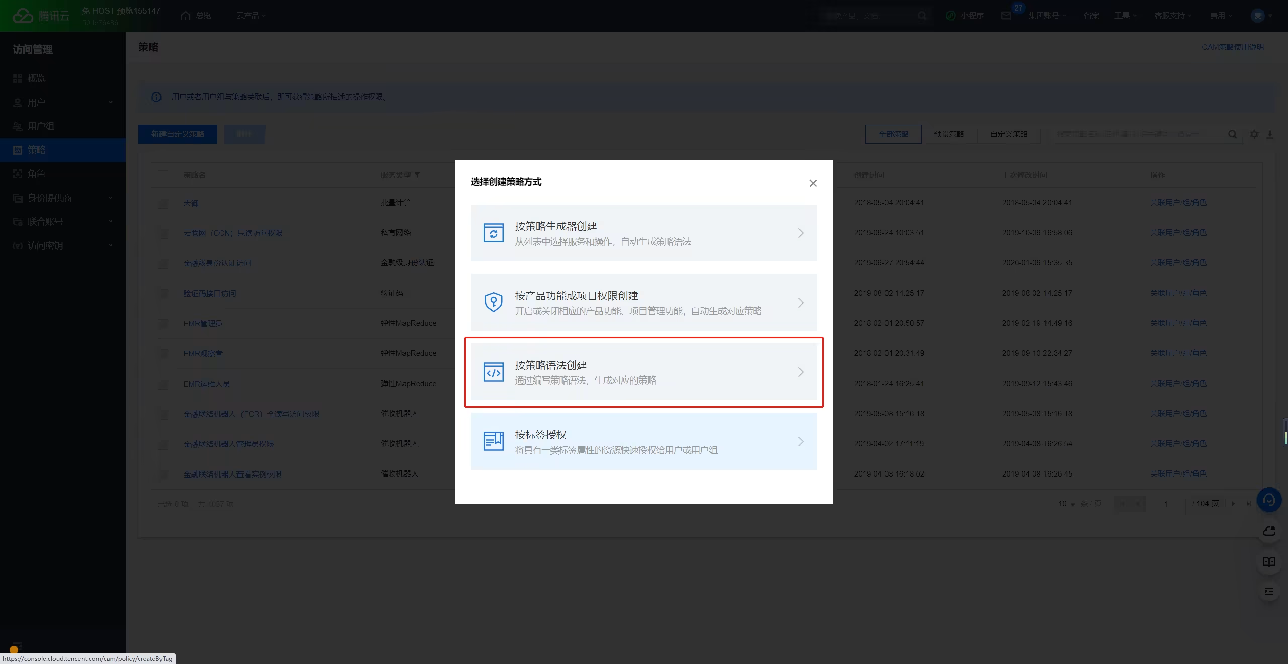 选择按策略语法创建。