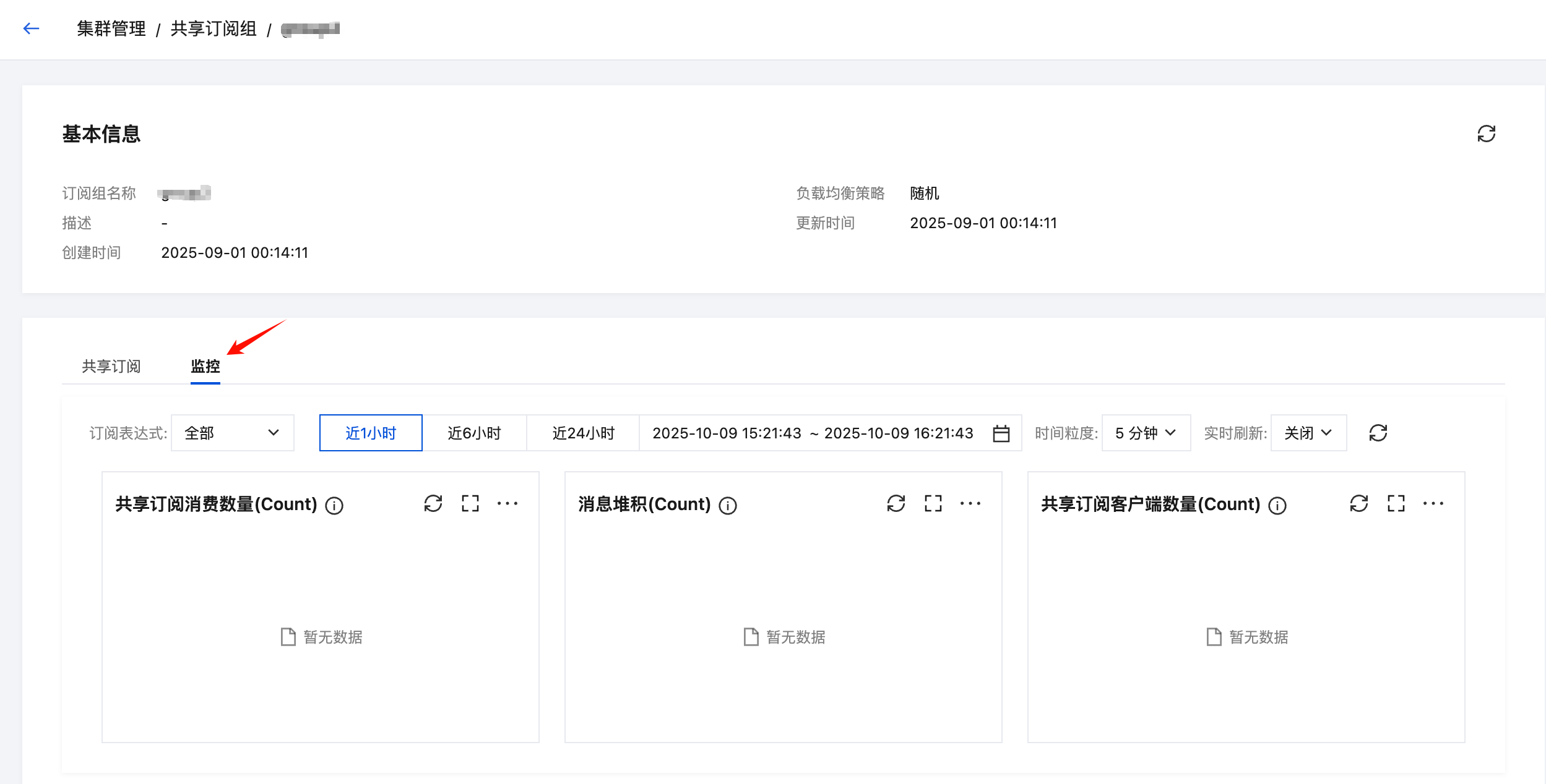 2. 进入 集群管理 > 共享订阅组管理,选择指定共享订阅组。