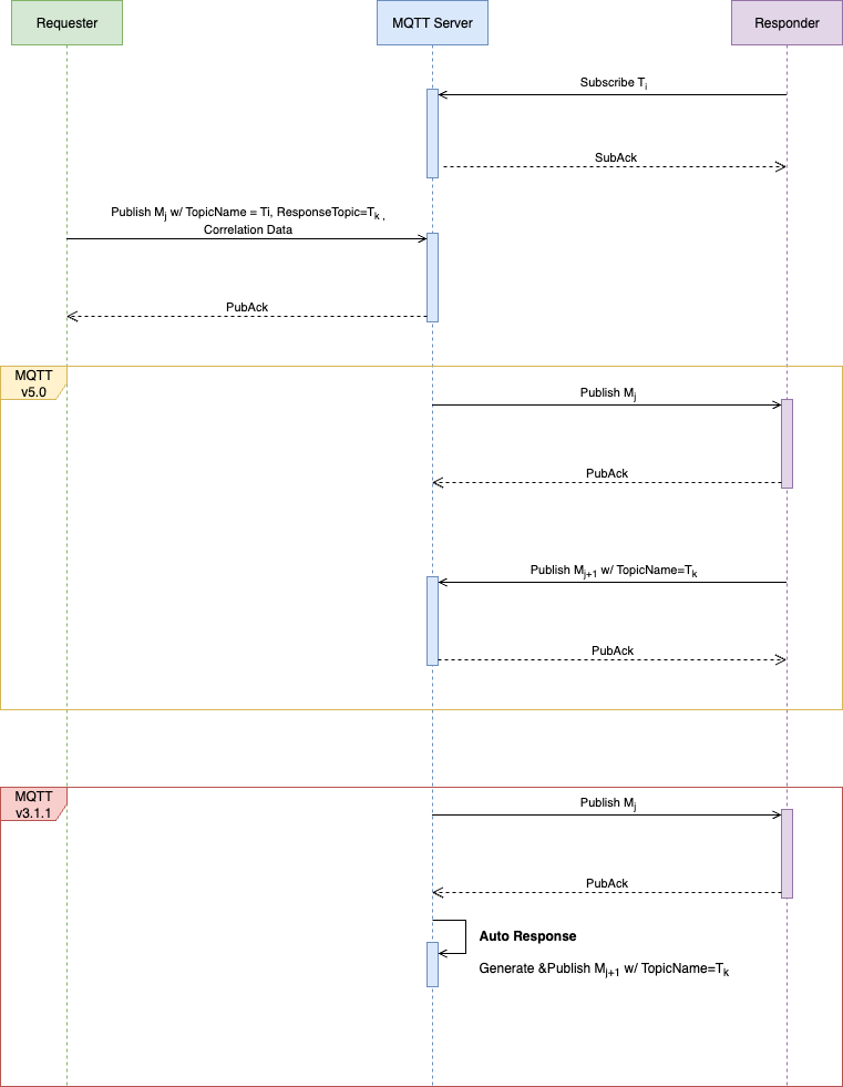 对于 MQTT v5.0 的Publisher、Subscriber, 可自行根据协议和业务情况,实现 Request Response;对于仅支持 v3.1、v3.1.1的存量设备,需要通过Request Response 代理回复的功能,实现统一的机制和方案。